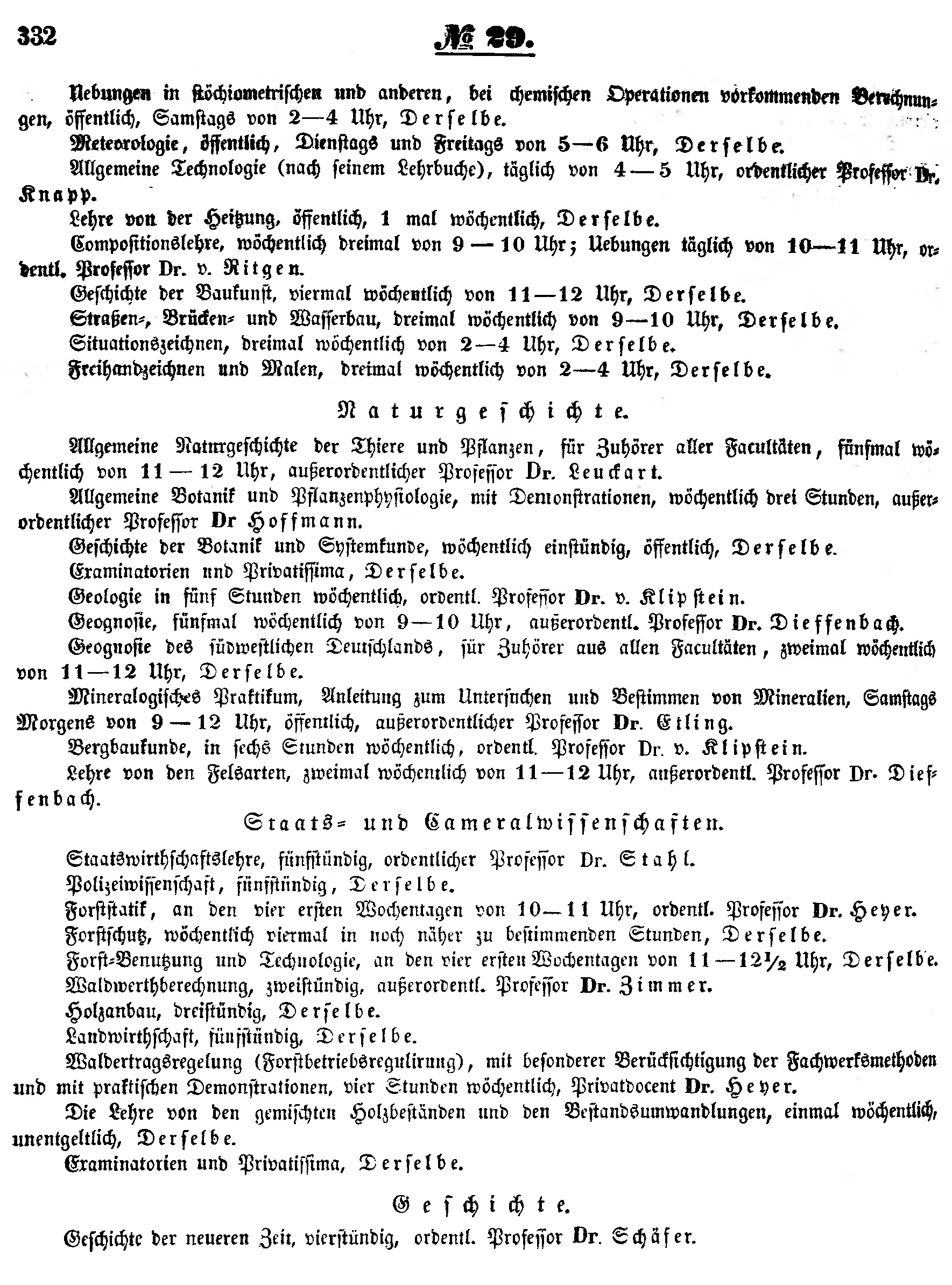 Compositionslehre, wöchentlich dreimal von 9-10 Uhr; Uebungen täglich von 10-11 Uhr, ordentl. Professor Dr. v. Ritgen.