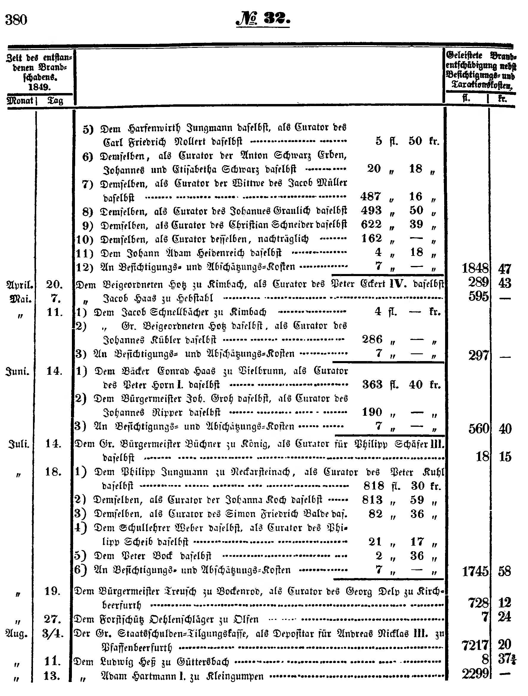 | April. | 20. | Dem Beigeordneten Hotz zu Kimbach, als Curator des Peter Eckert IV. daselbst | 289 | 43 | |||||
