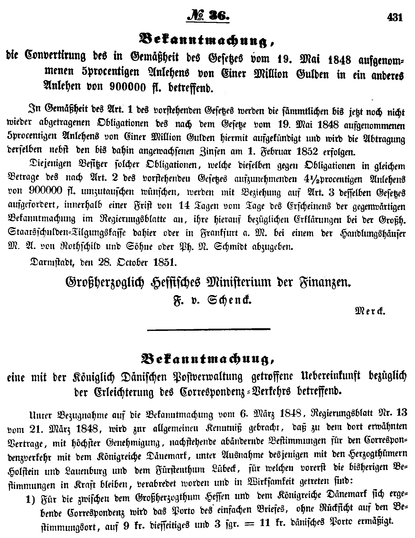 - Darmstadt, den 28. October 1851.