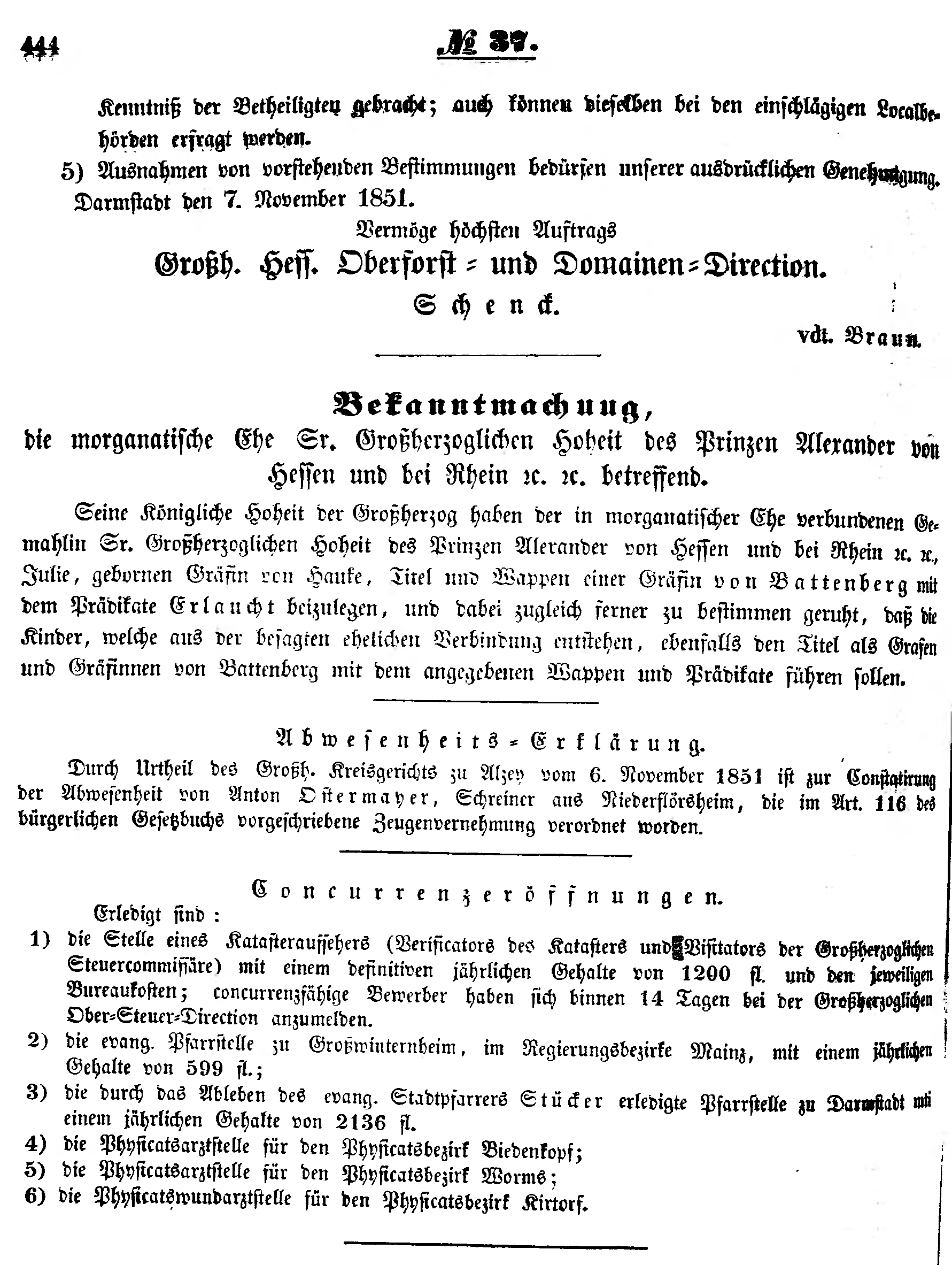 - Darmstadt den 7. November 1851.