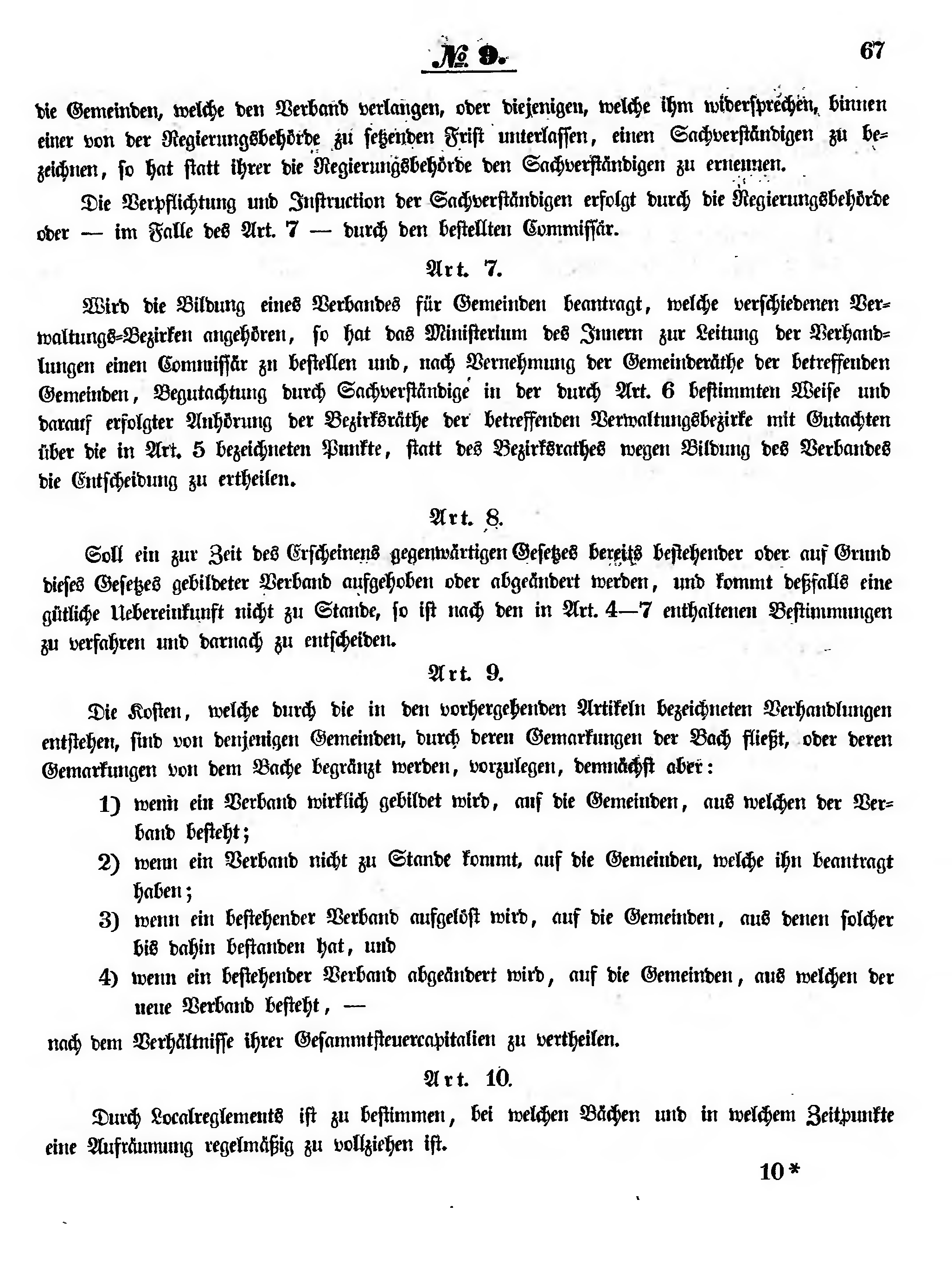 Die Kosten, welche durch die in den vorhergehenden Artikeln bezeichneten Verhandlungen entstehen, sind von denjenigen Gemeinden, durch deren Gemarkungen der Bach fließt, oder deren Gemarkungen von dem Bache begränzt werden, vorzulegen, demnächst aber: