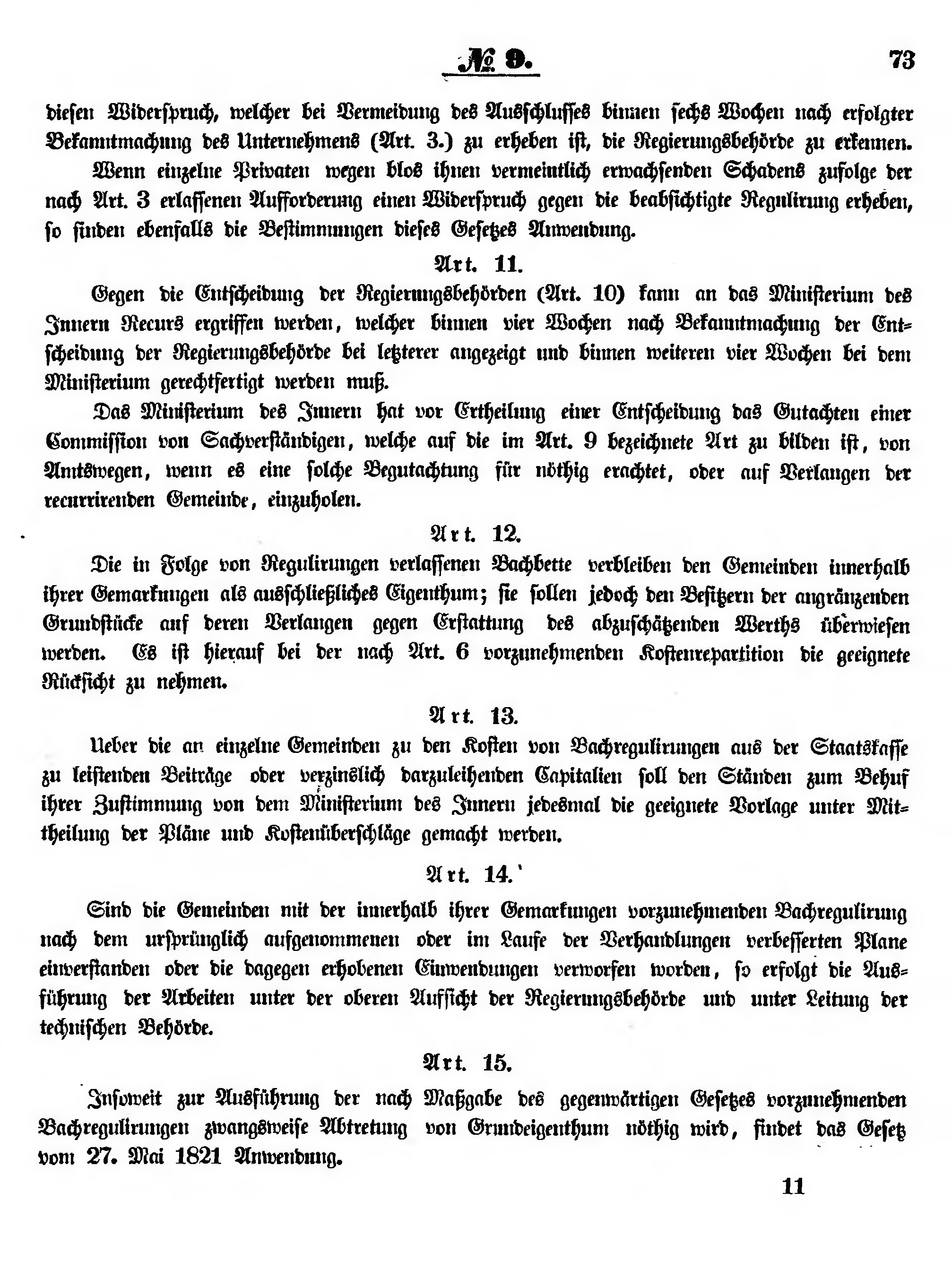 Insoweit zur Ausführung der nach Maßgabe des gegenwärtigen Gesetzes vorzunehmenden Bachregulirungen zwangsweise Abtretung von Grundeigenthum nöthig wird, findet das Gesetz vom 27. Mai 1821 Anwendung.