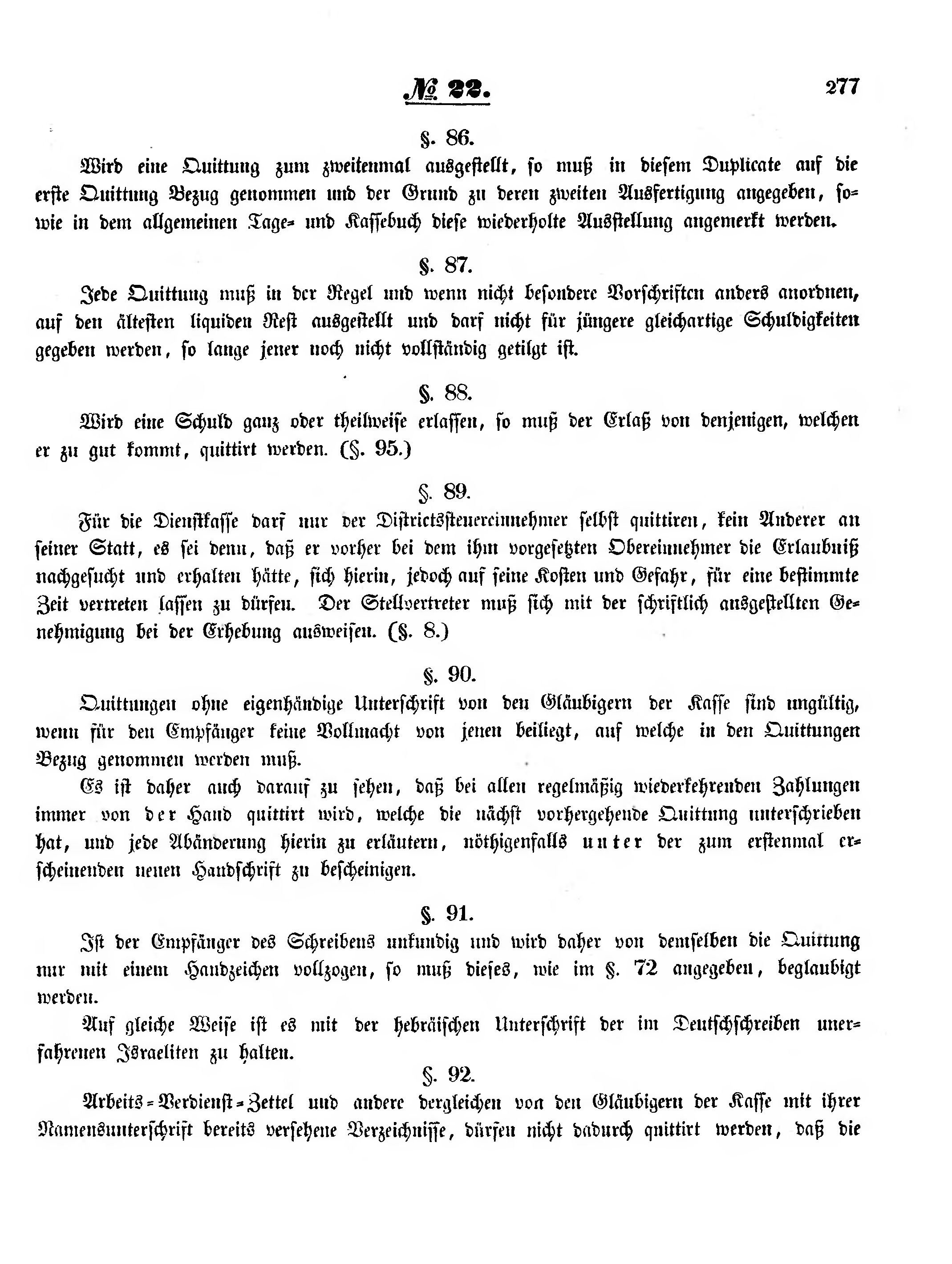 Es ist daher auch darauf zu sehen, daß bei allen regelmäßig wiederkehrenden Zahlungen immer von der Hand quittirt wird, welche die nächst vorhergehende Quittung unterschrieben hat, und jede Abänderung hierin zu erläutern, nöthigenfalls unter der zum erstenmal erscheinenden neuen Handschrift zu bescheinigen.