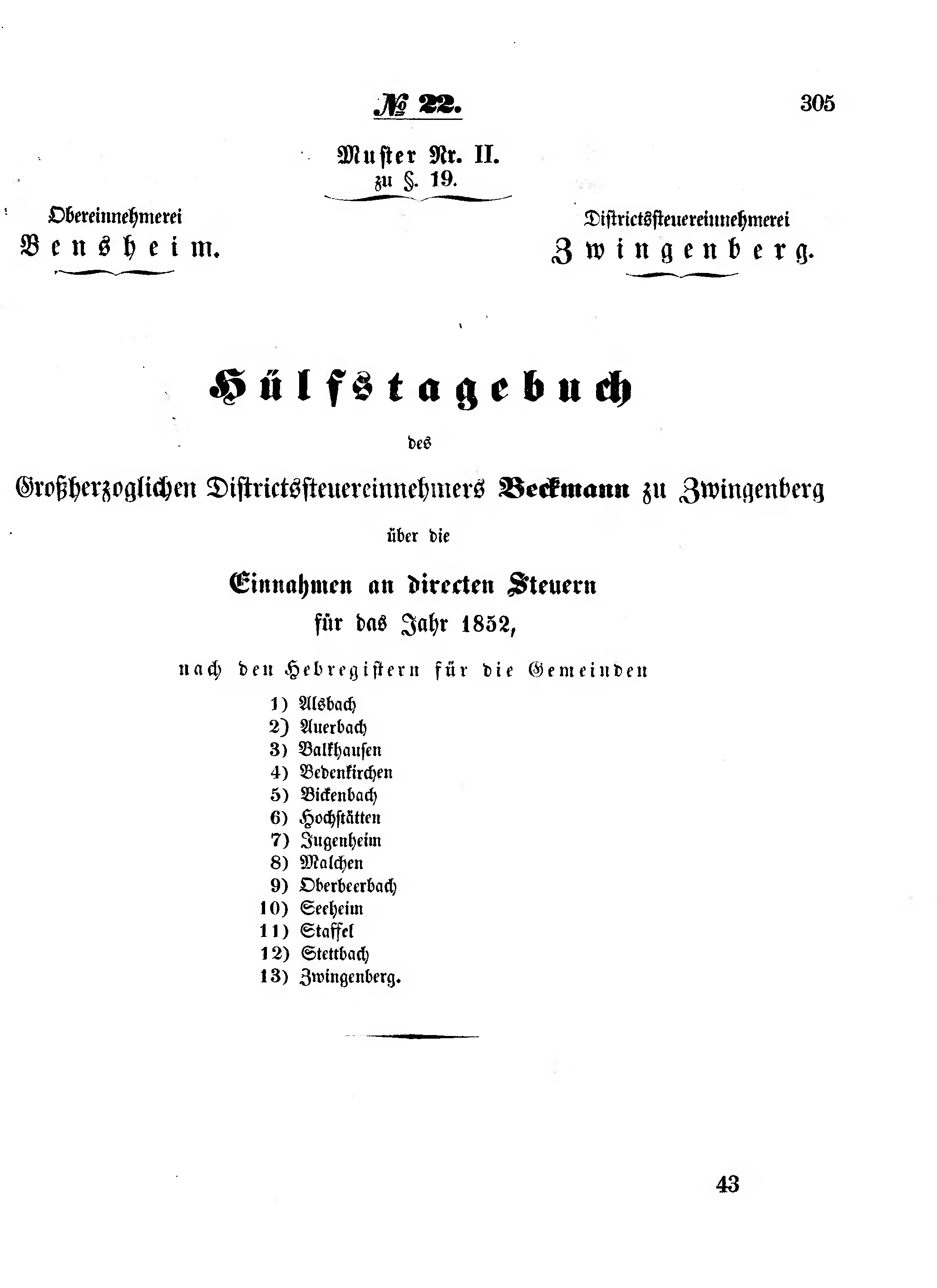 Großherzoglichen Districtssteuereinnehmers Beckmann[1] zu Zwingenberg
