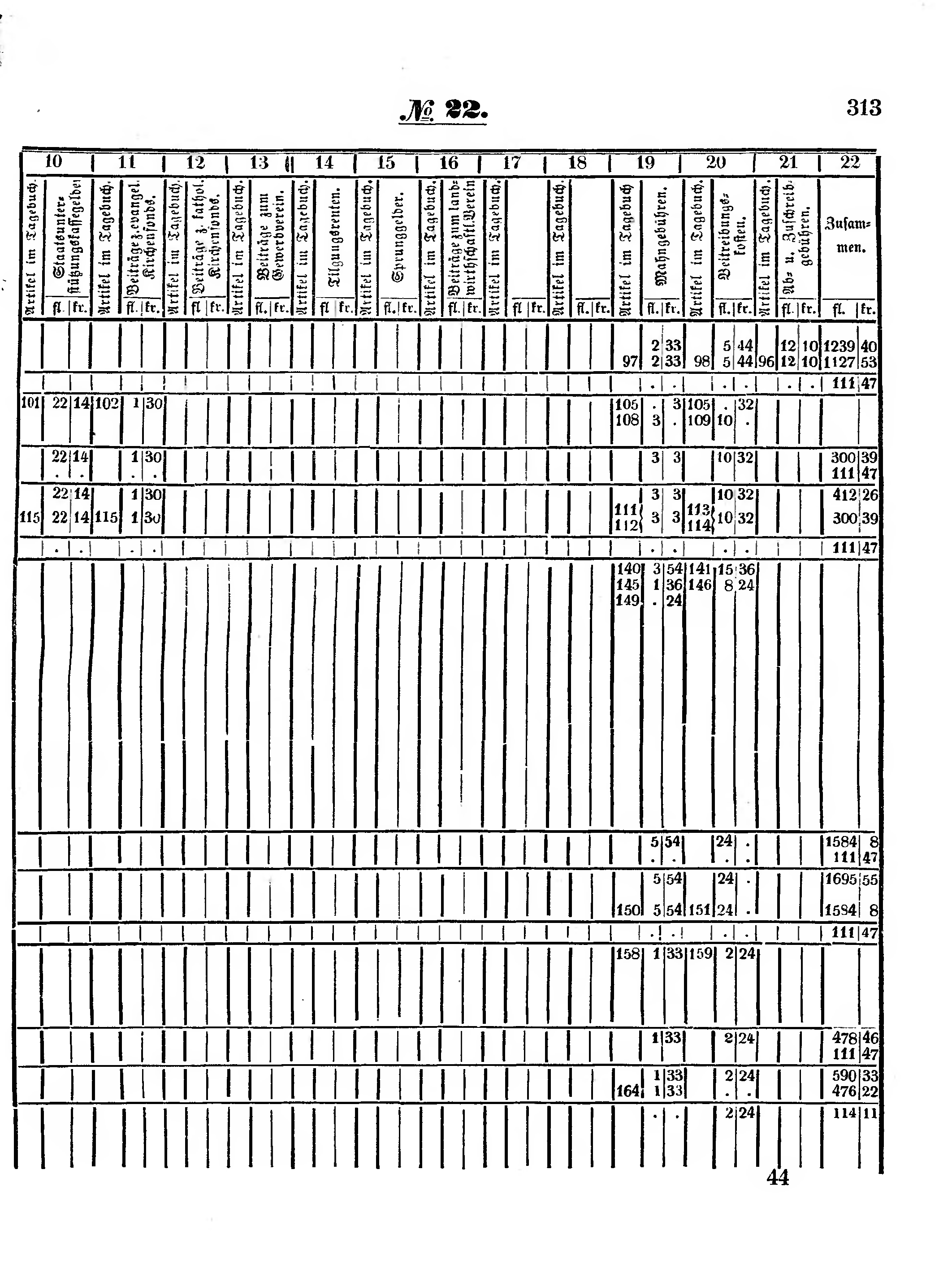 (Anm. der Redaktion: Waagerechte Fortsetzung der Tabelle von Seite 312)