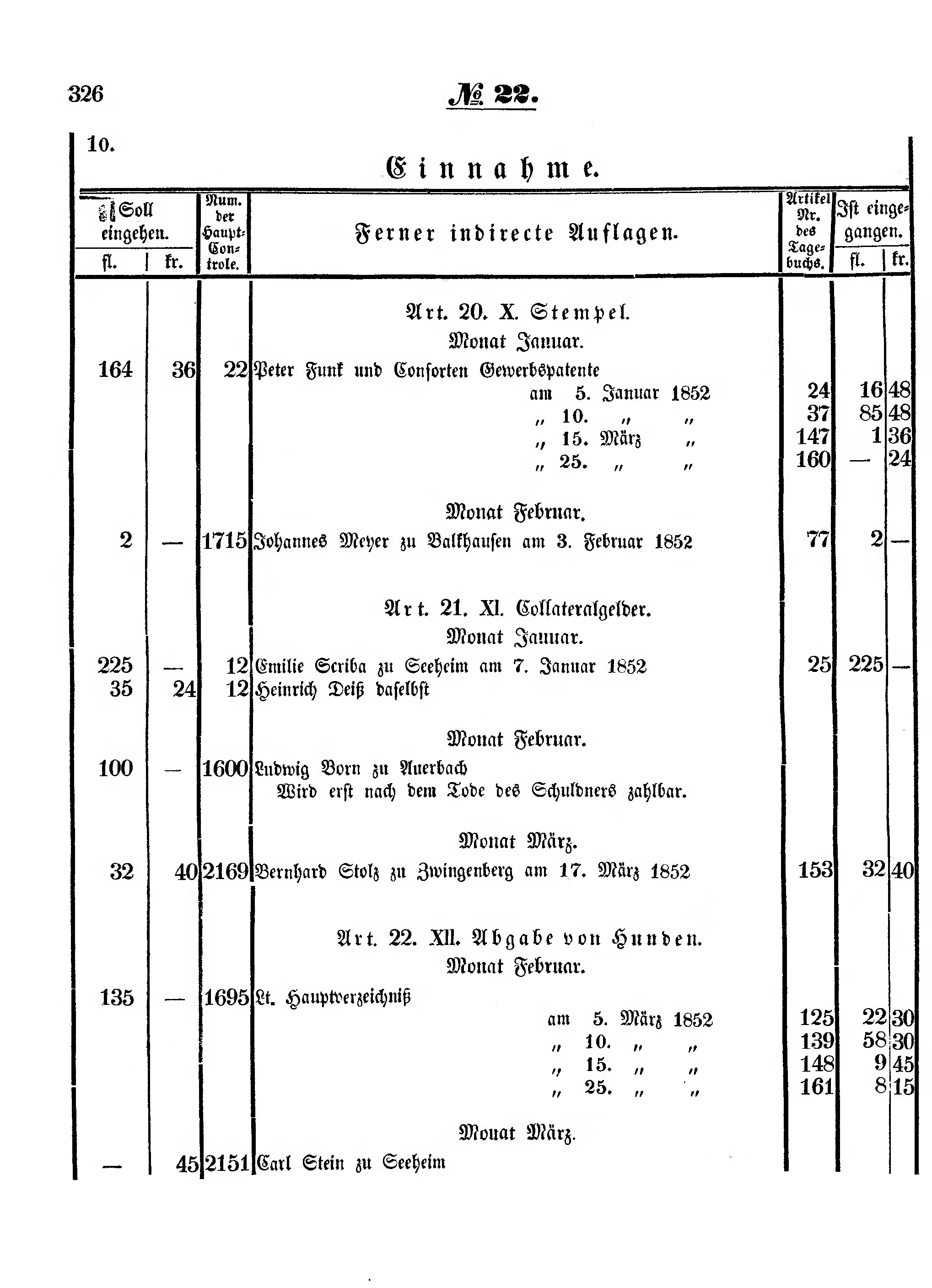 | 32 | 40 | 2169 | Bernhard Stolz[1] zu Zwingenberg am 17. März 1852 | 153 | 32 | 40 | ||||