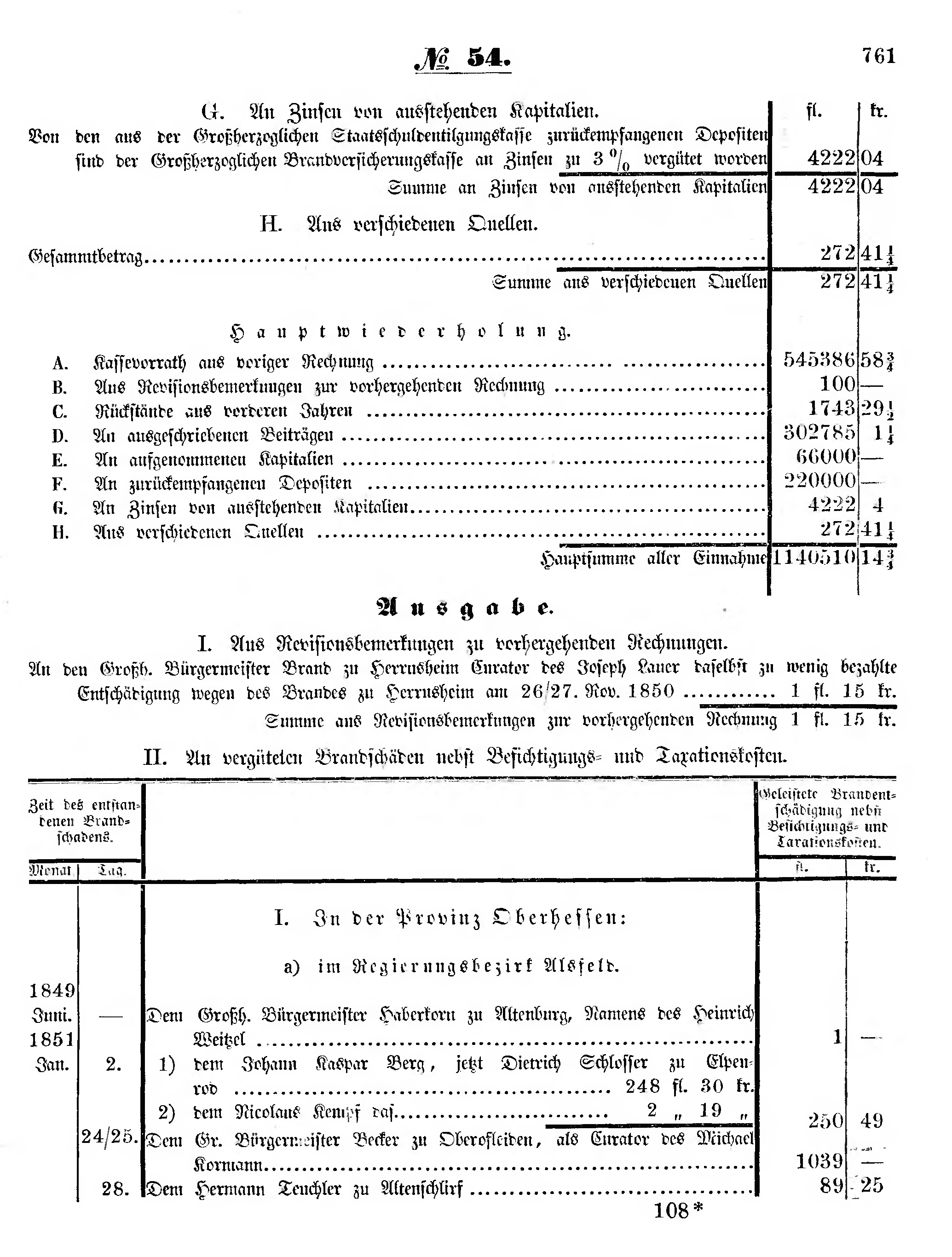 | A. Kassevorrath aus voriger Rechnung | 545386 | 58 3/4 | ||||