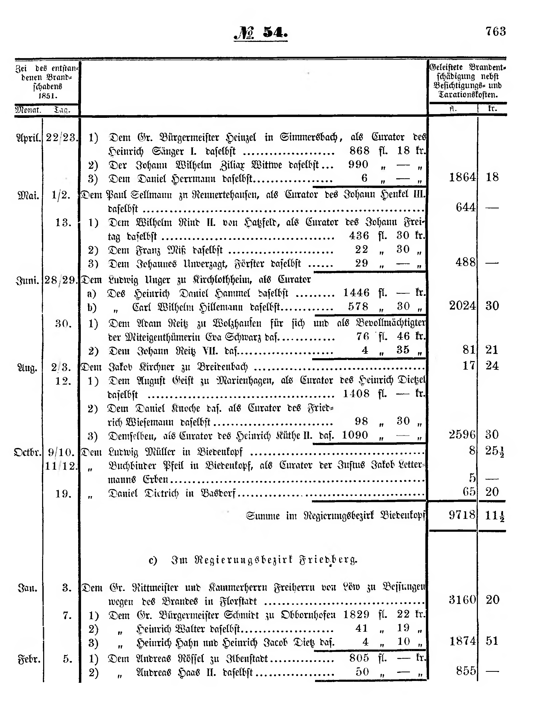 | April. | 22/23. | 1) Dem Gr. Bürgermeister Heinzel in Simmersbach, als Curator des Heinrich Sänger I. daselbst | 868 | fl. | 18 | kr. | ||