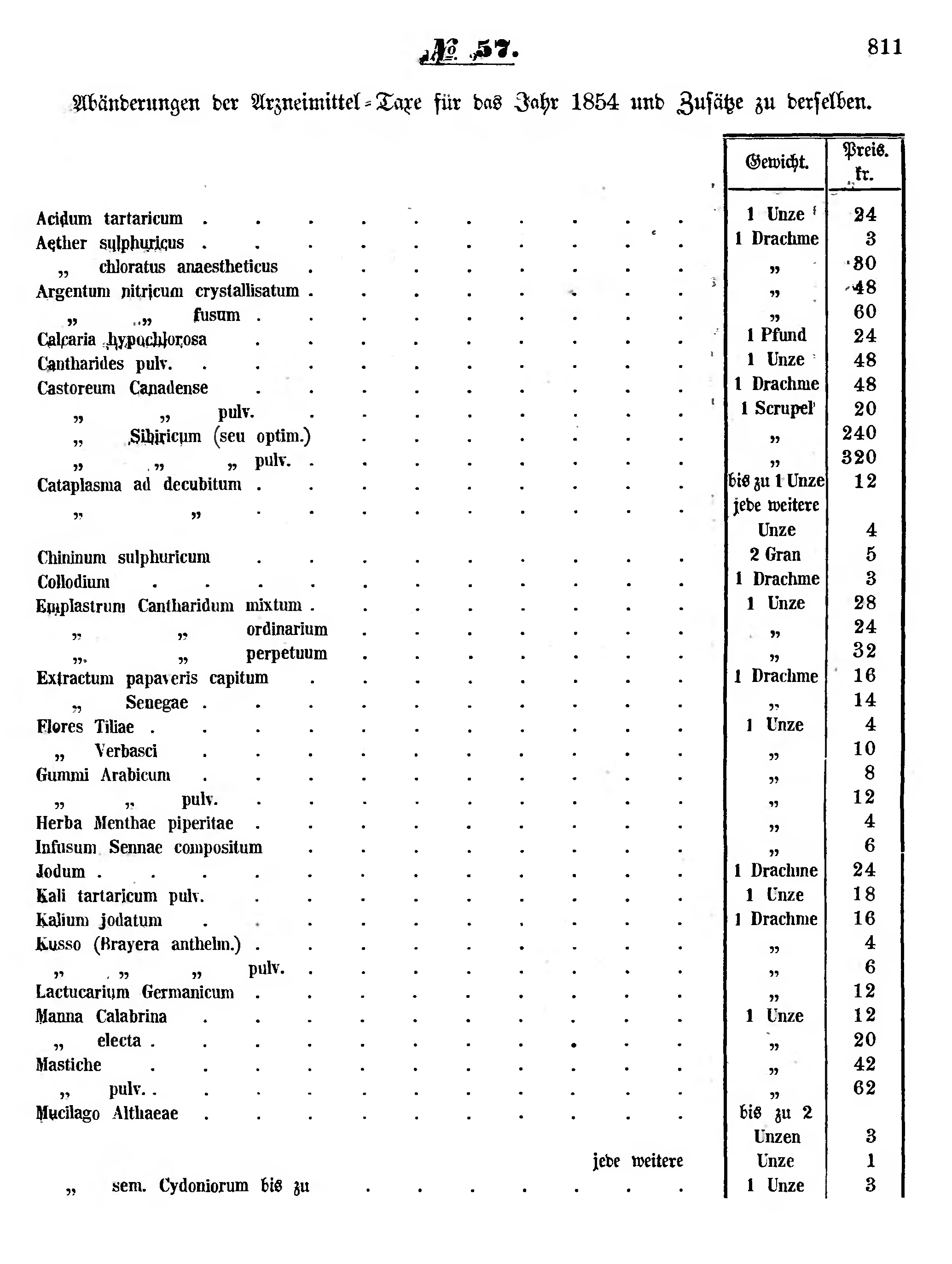 Abänderungen der Arzneimittel-Taxe für das Jahr 1854 und Zusätze zu derselben.
