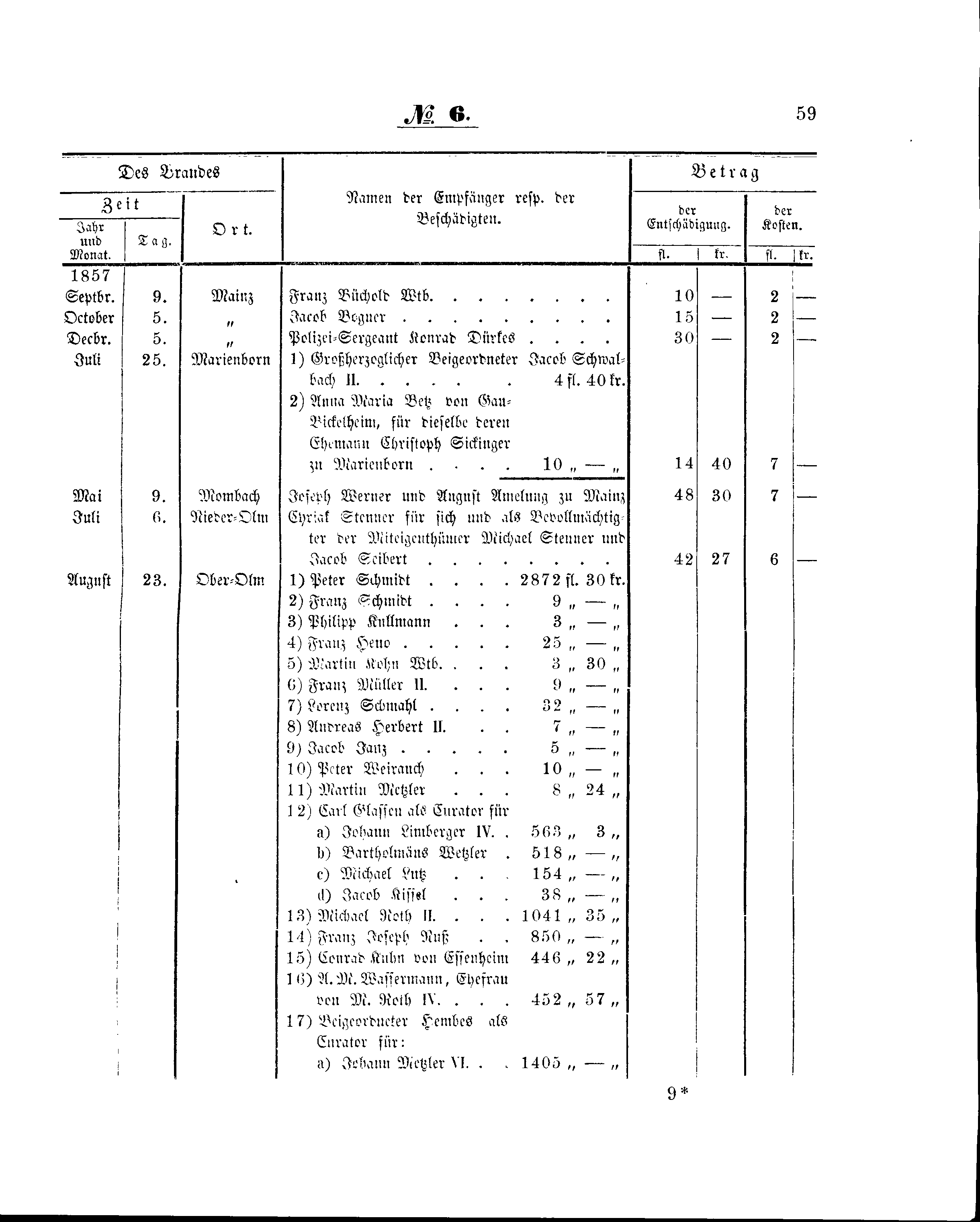 | August | 23. | Ober-Olm | 1) | Peter Schmidt | 2872 | fl. | 30 | kr. | |||||