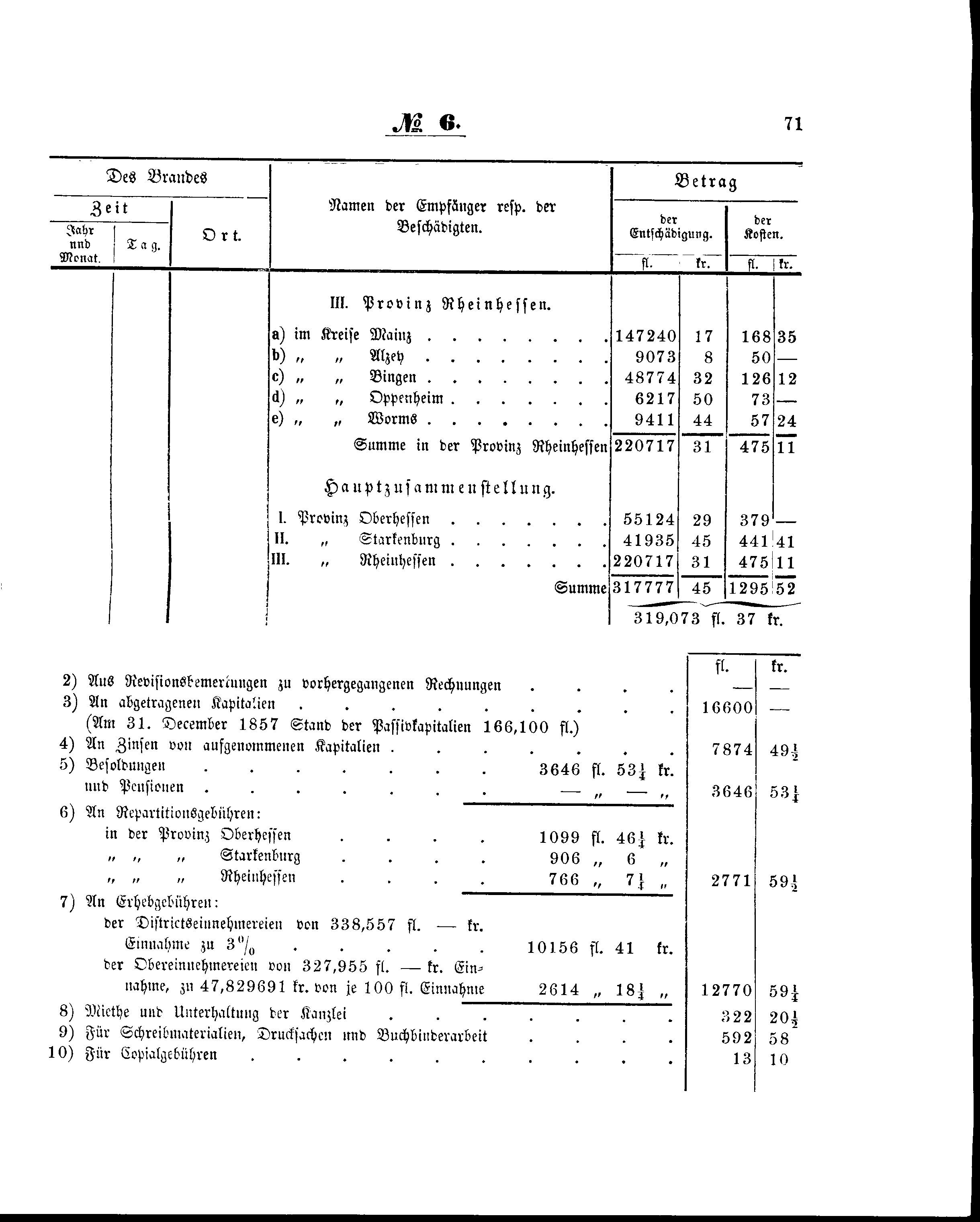 | in | der | Provinz | Oberhessen | 1099 | fl. | 461/4 | kr. | |||