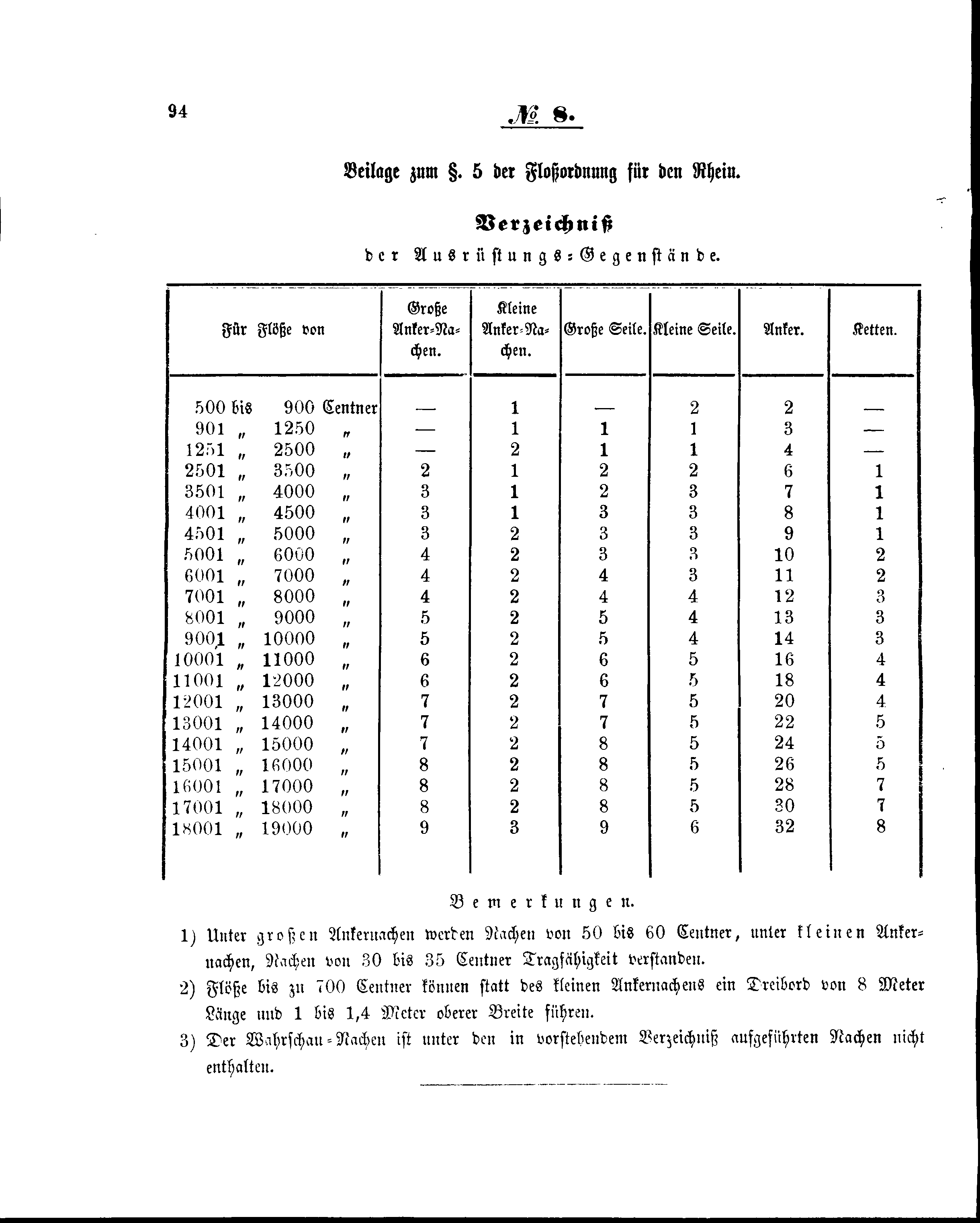 - 1) Unter großen Ankernachen werden Nachen von 50 bis 60 Centner, unter kleinen Ankernachen, Nachen von 30 bis 35 Centner Tragfähigkeit verstanden.