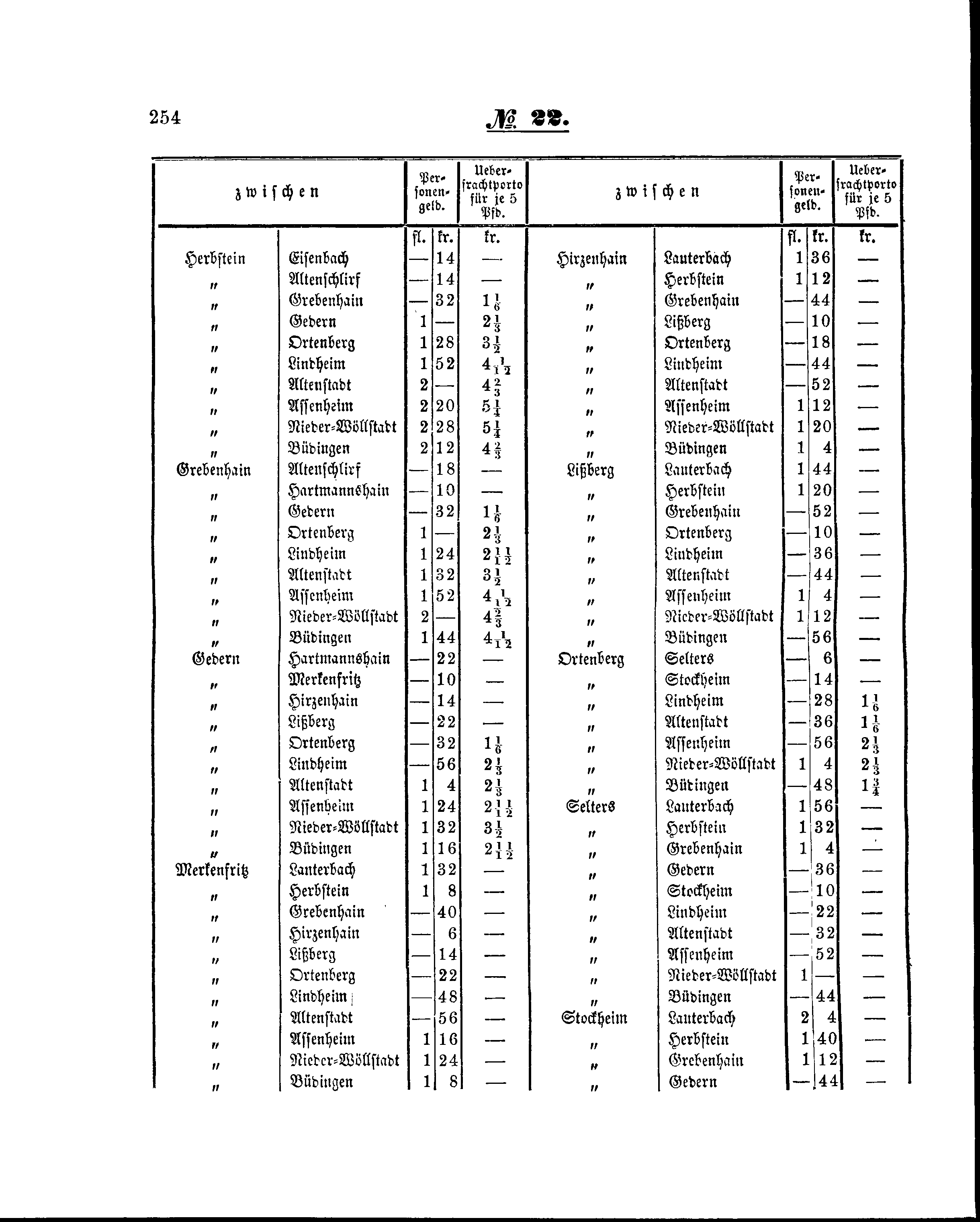 | " | Ortenberg | - | 32 | 11/6 | " | Assenheim | - | 56 | 21/3 |