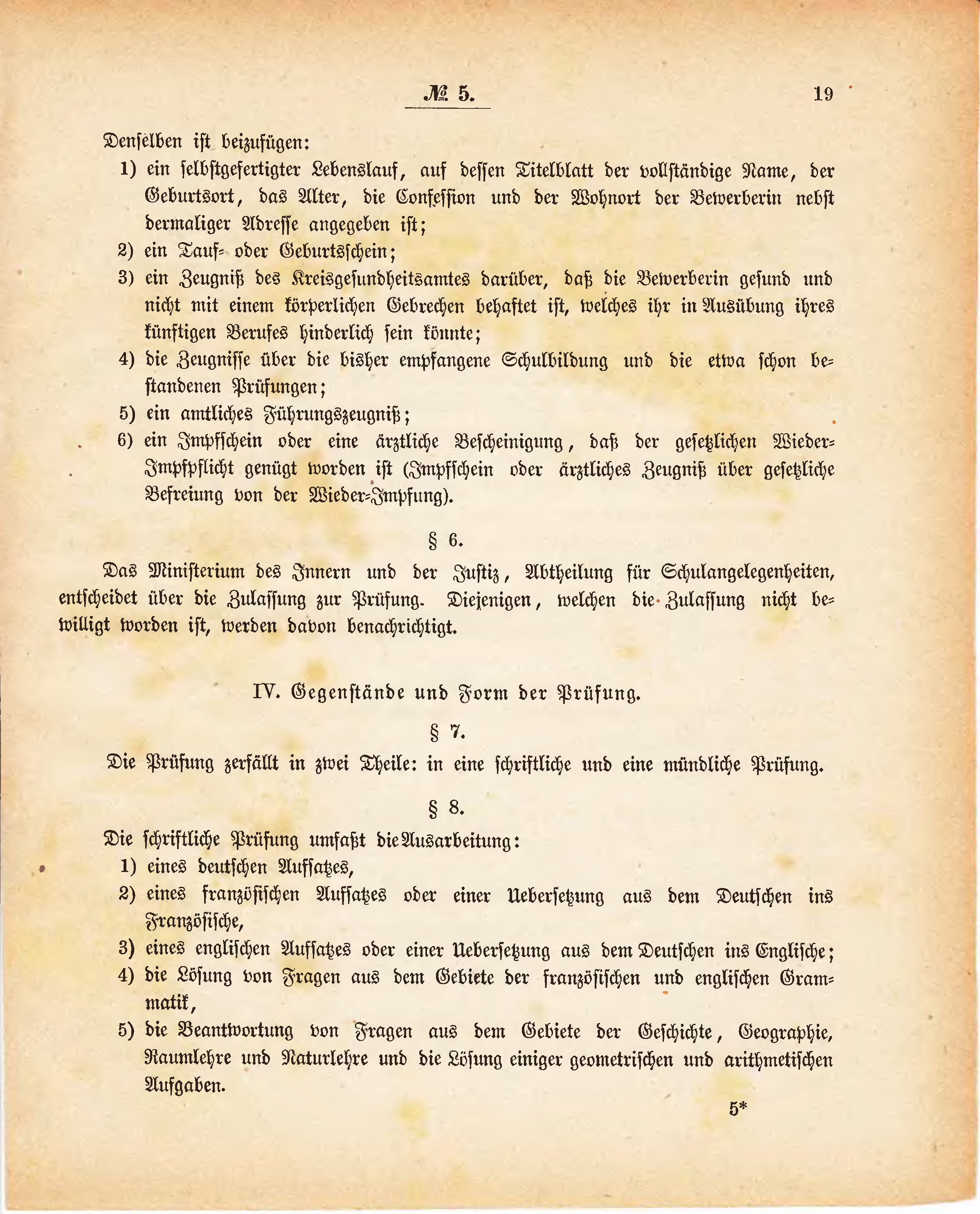 Das Ministerium des Innern und der Justiz, Abtheilung für Schulangelegenheiten, entscheidet über die Zulassung zur Prüfung. Diejenigen, welchen die Zulassung nicht bewilligt worden ist, werden davon benachrichtigt.
