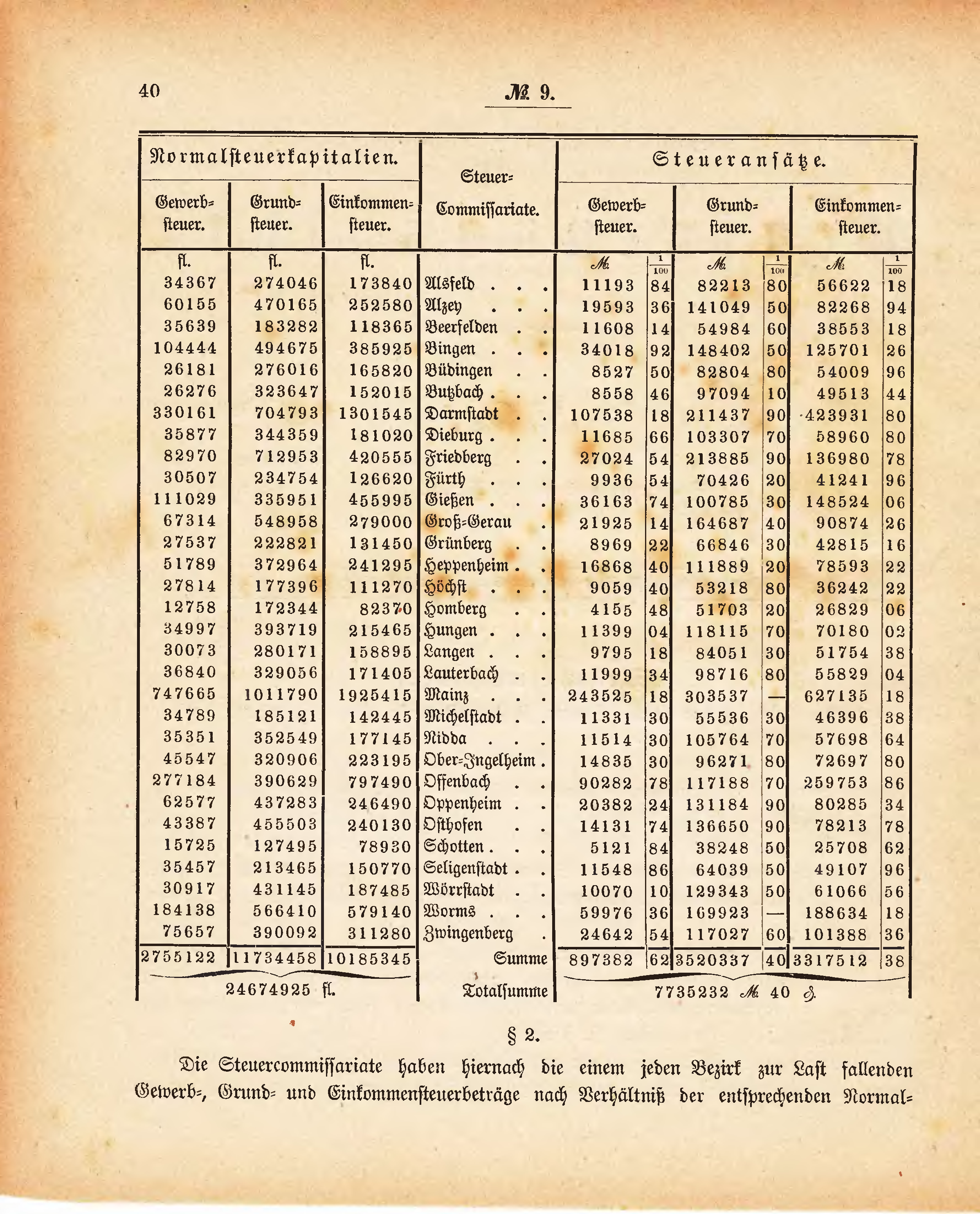 Die Steuercommissariate haben hiernach die einem jeden Bezirk zur Last fallenden Gewerb-, Grund- und Einkommensteuerbeträge nach Verhältniß der entsprechenden Normalsteuerkapitalien