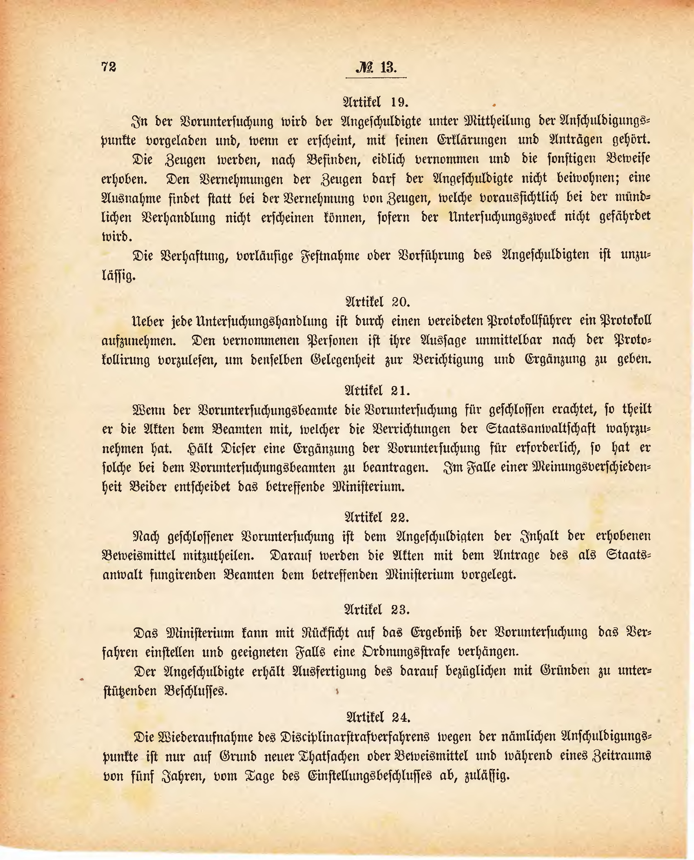 Die Wiederaufnahme des Disciplinarstrafverfahrens wegen der nämlichen Anschuldigungspunkte ist nur auf Grund neuer Thatsachen oder Beweismittel und während eines Zeitraums von fünf Jahren, vom Tage des Einstellungsbeschlusses ab, zulässig.