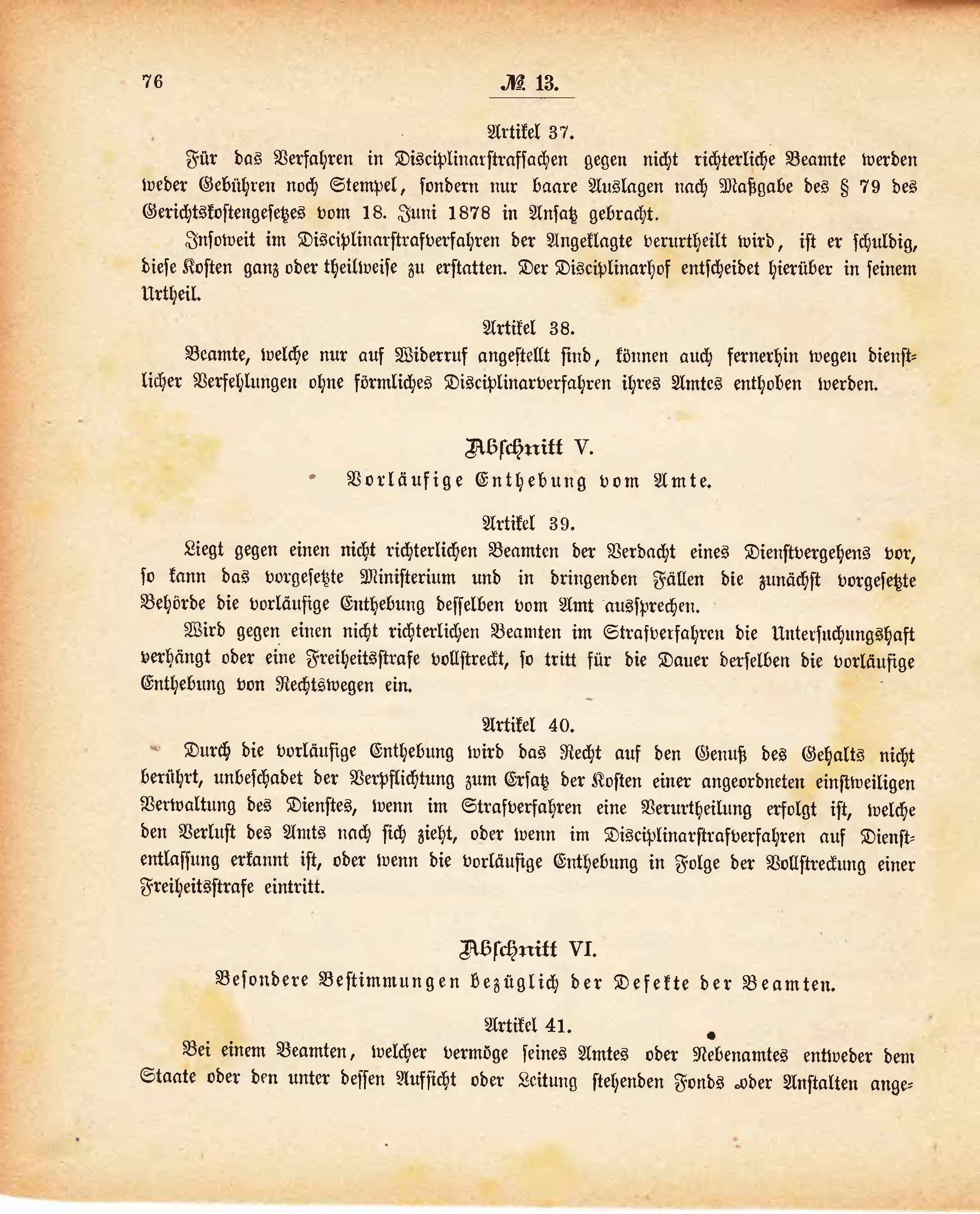 Beamte, welche nur auf Widerruf angestellt sind, können auch fernerhin wegen dienstlicher Verfehlungen ohne förmliches Disciplinarverfahren ihres Amtes enthoben werden.