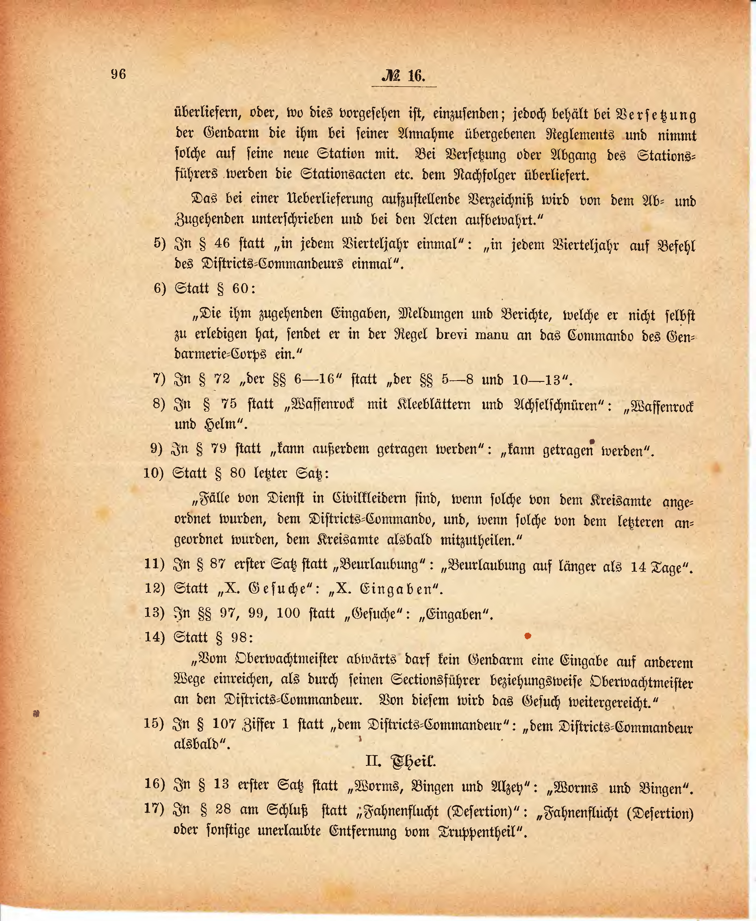 | 15) | In § 107 Ziffer 1 statt "dem Districts-Commandeur": "dem Districts-Commandeur alsbald". | |