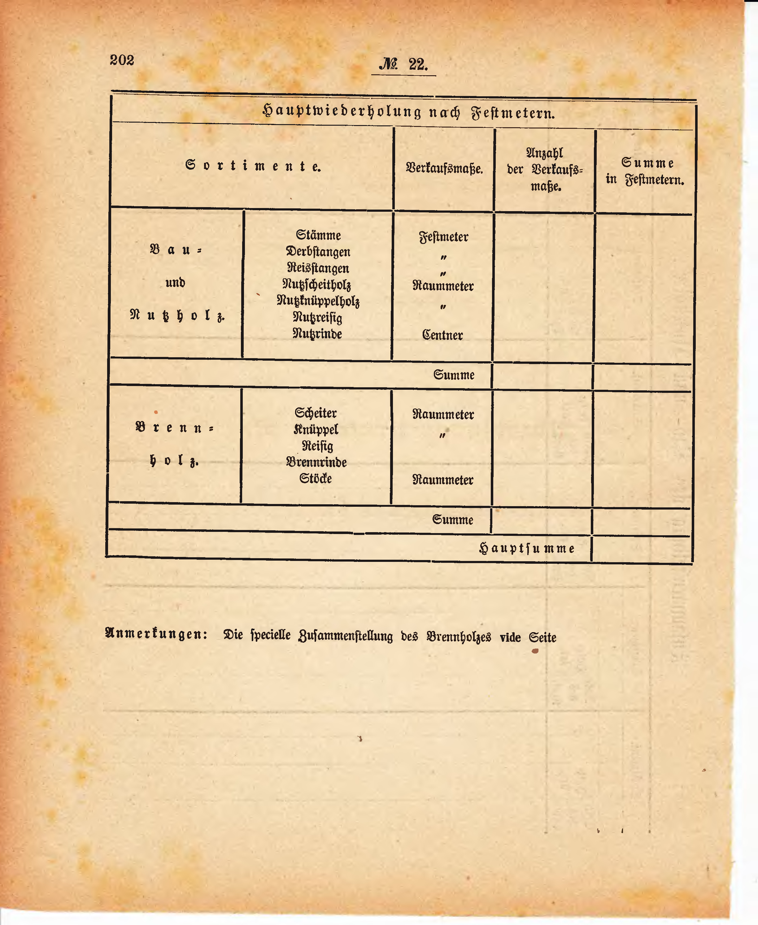 Anmerkungen: Die specielle Zusammenstellung des Brennholzes vide Seite