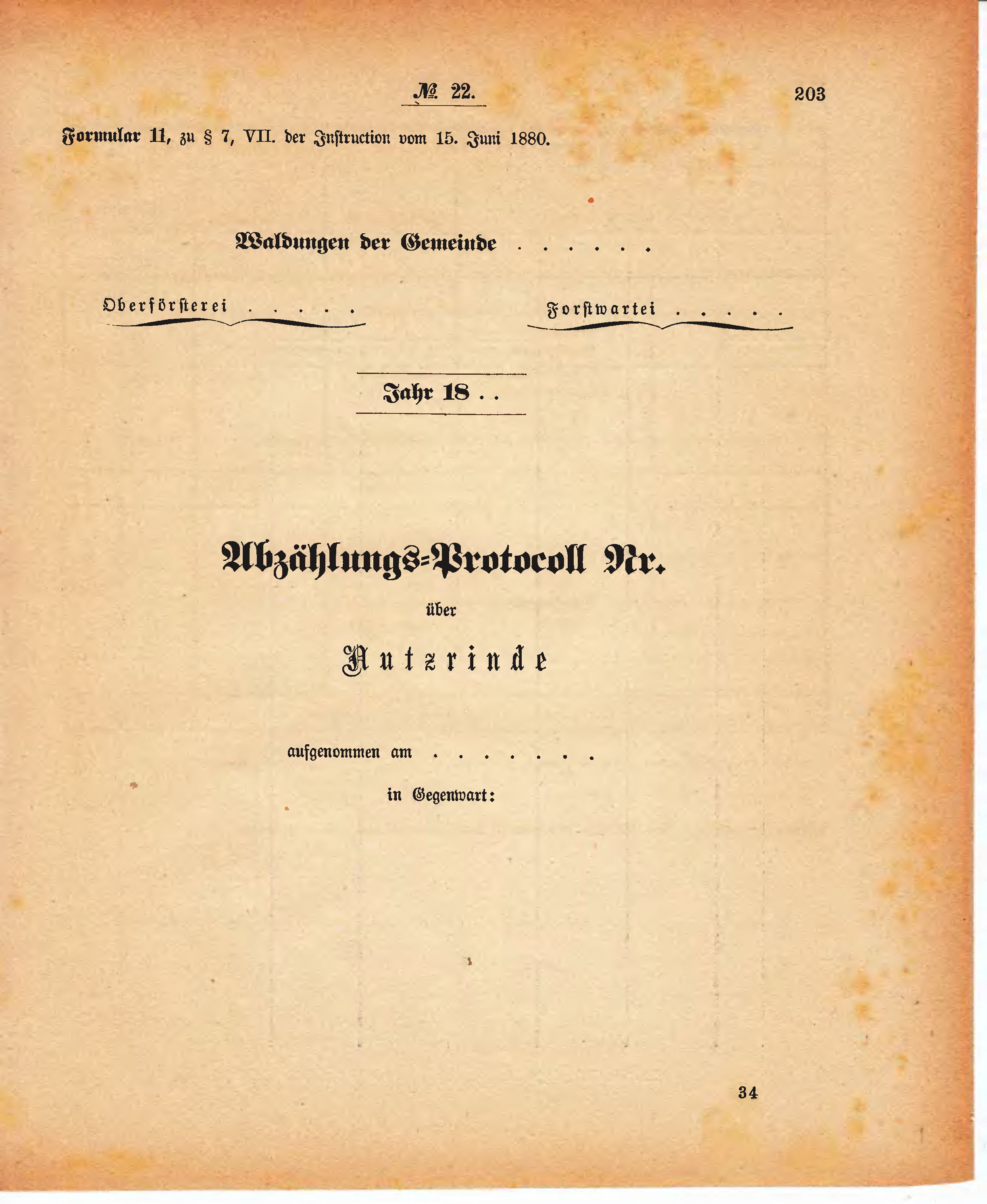 Formular 11, zu § 7, VII. der Instruction vom 15.Juni 1880.