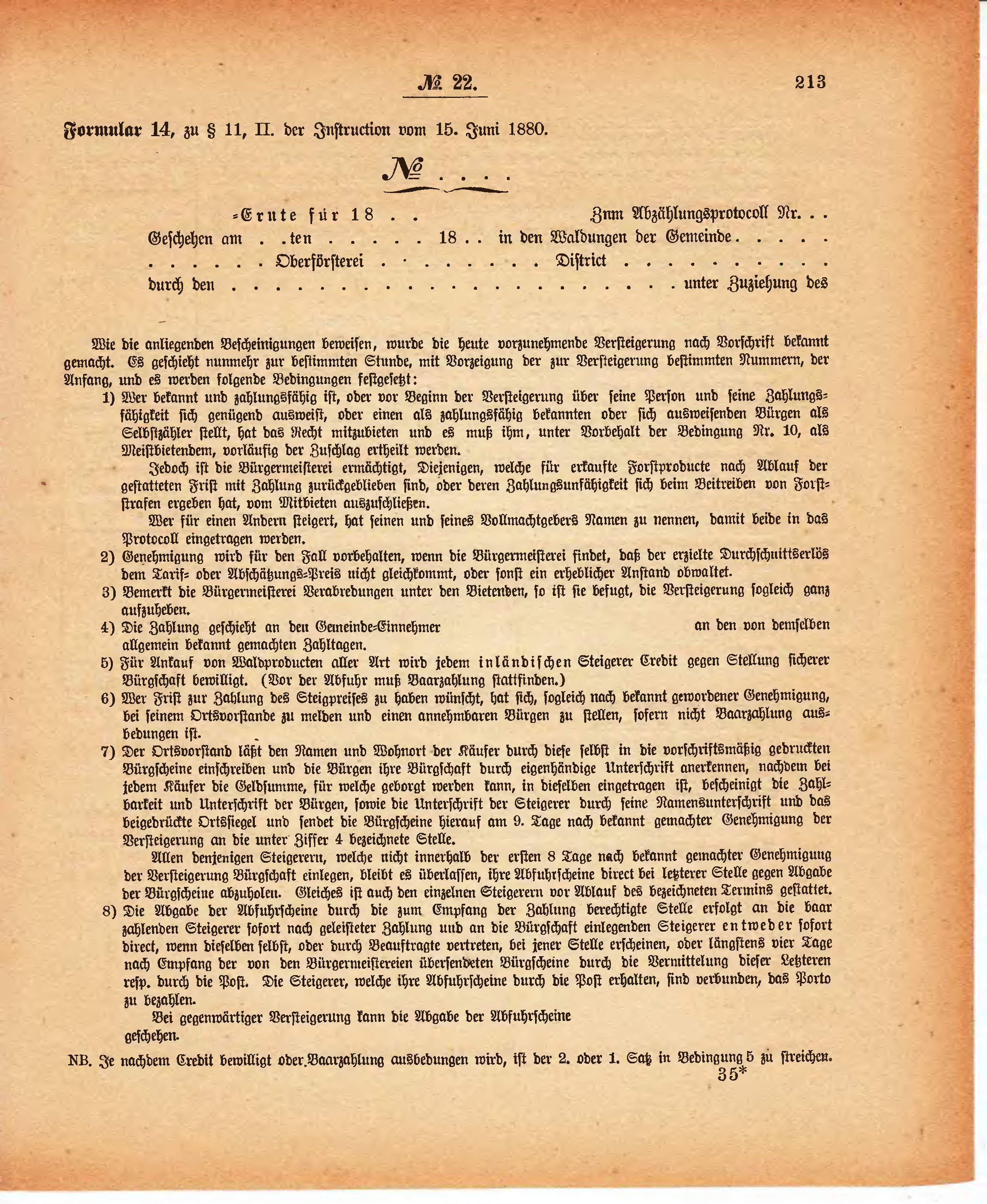 Formular 14, zu § 11, II. der Instruction vom 15. Juni 1880.