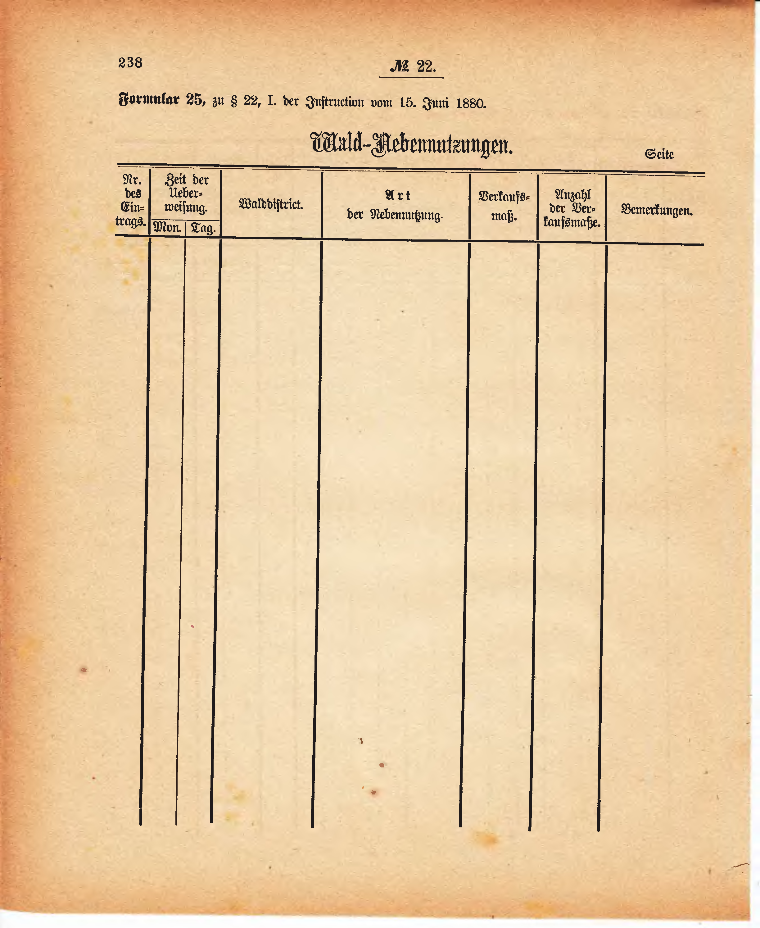 Formular 25, zu § 22, I. der Instruction vom 15. Juni 1880.