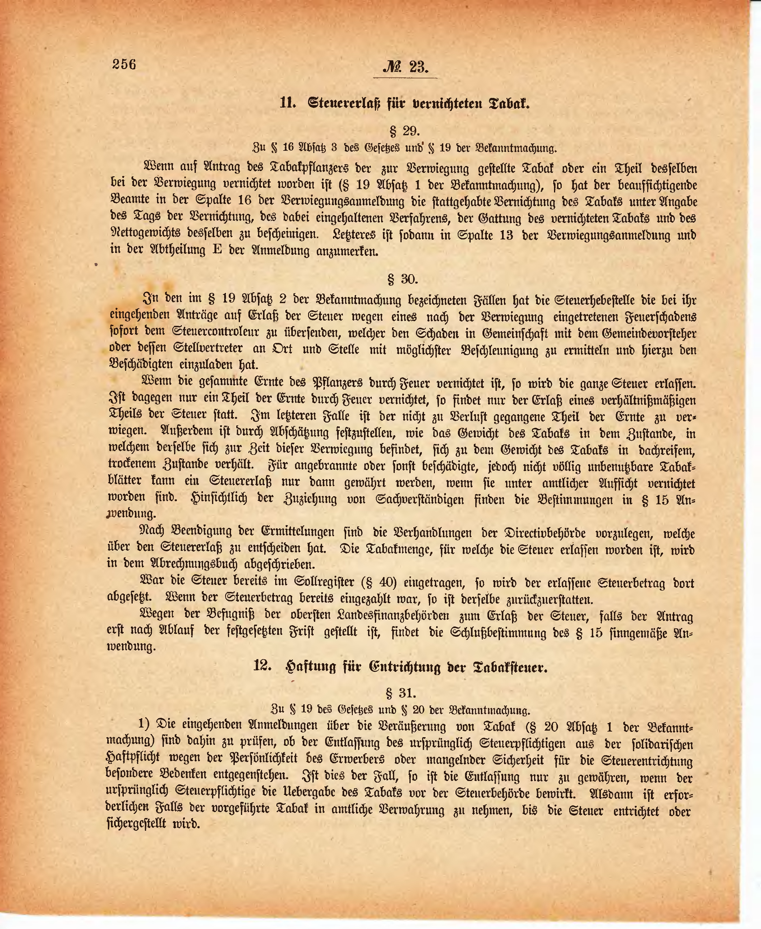 Nach Beendigung der Ermittelungen sind die Verhandlungen der Directivbehörde vorzulegen, welche über den Steuererlaß zu entscheiden hat. Die Tabakmenge, für welche die Steuer erlassen worden ist, wird indem Abrechnungsbuch abgeschrieben.