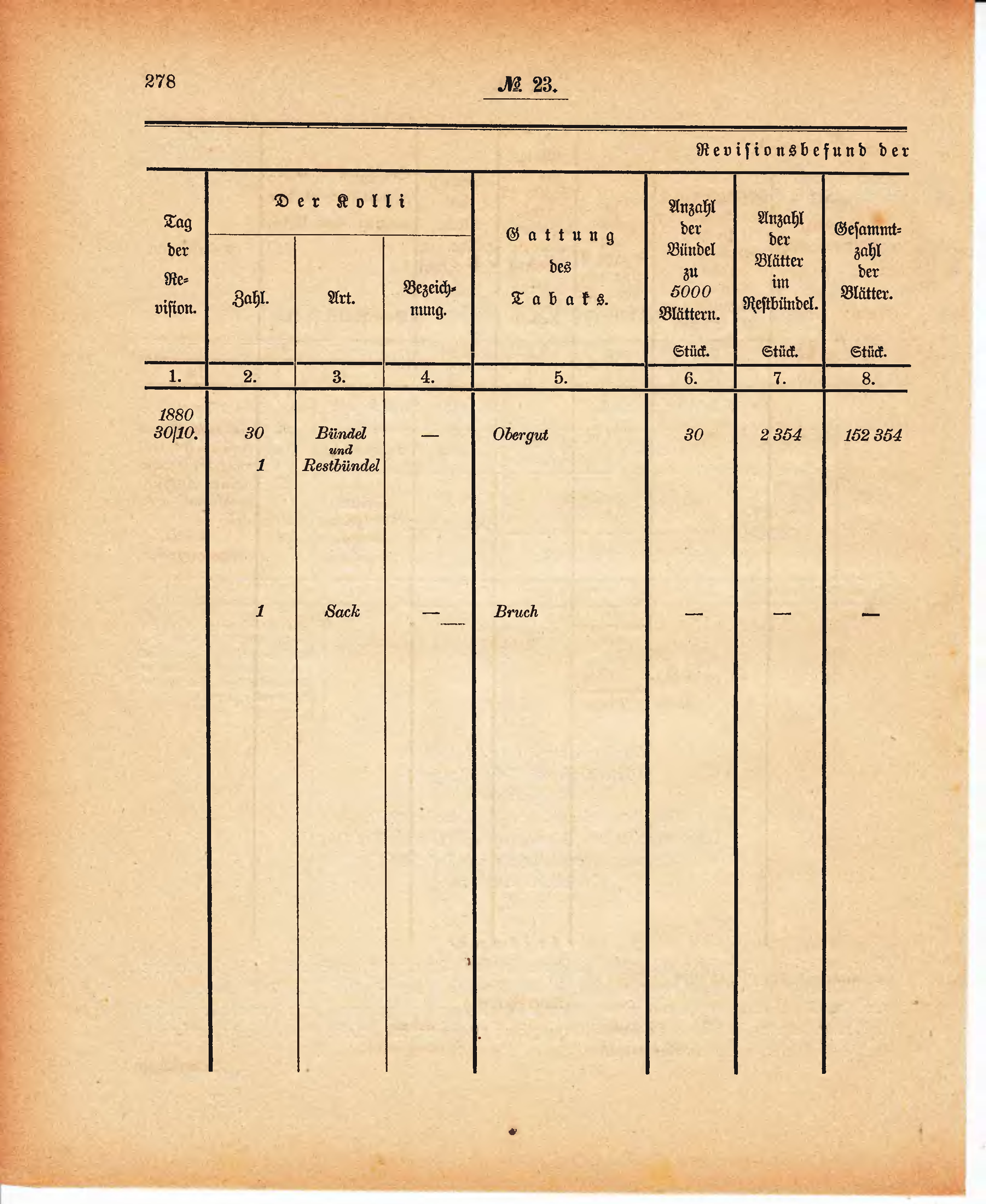 37/10 kg Bruch sind am 30. Ok- tober 1880 unter meiner Aufsicht verbrannt wor- den Steueraufseher. |