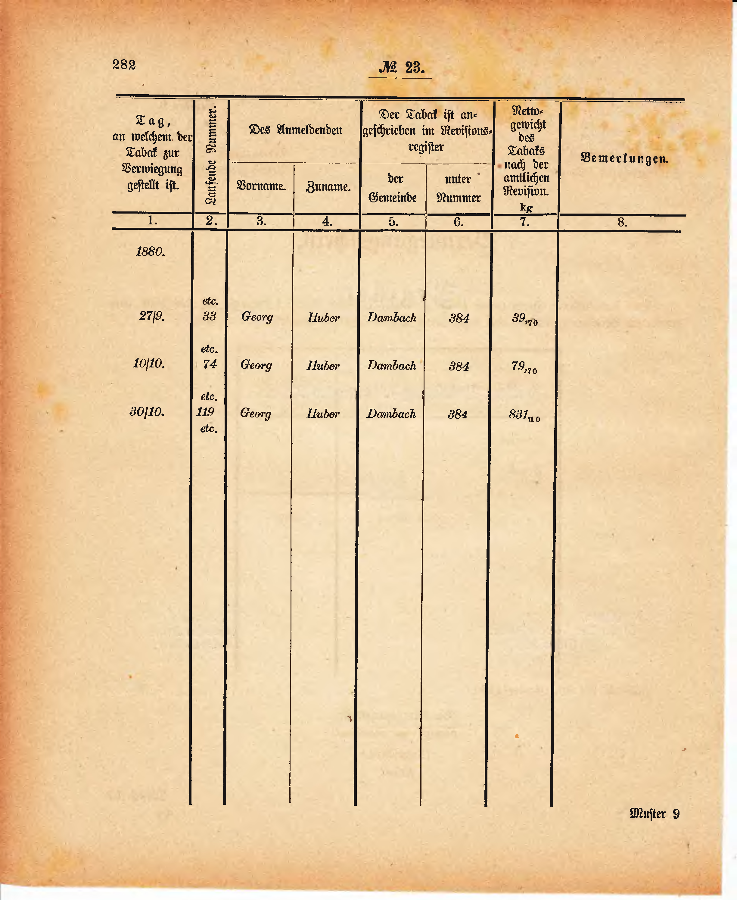 an welchem der Tabak zur Verwiegung gestellt ist. |