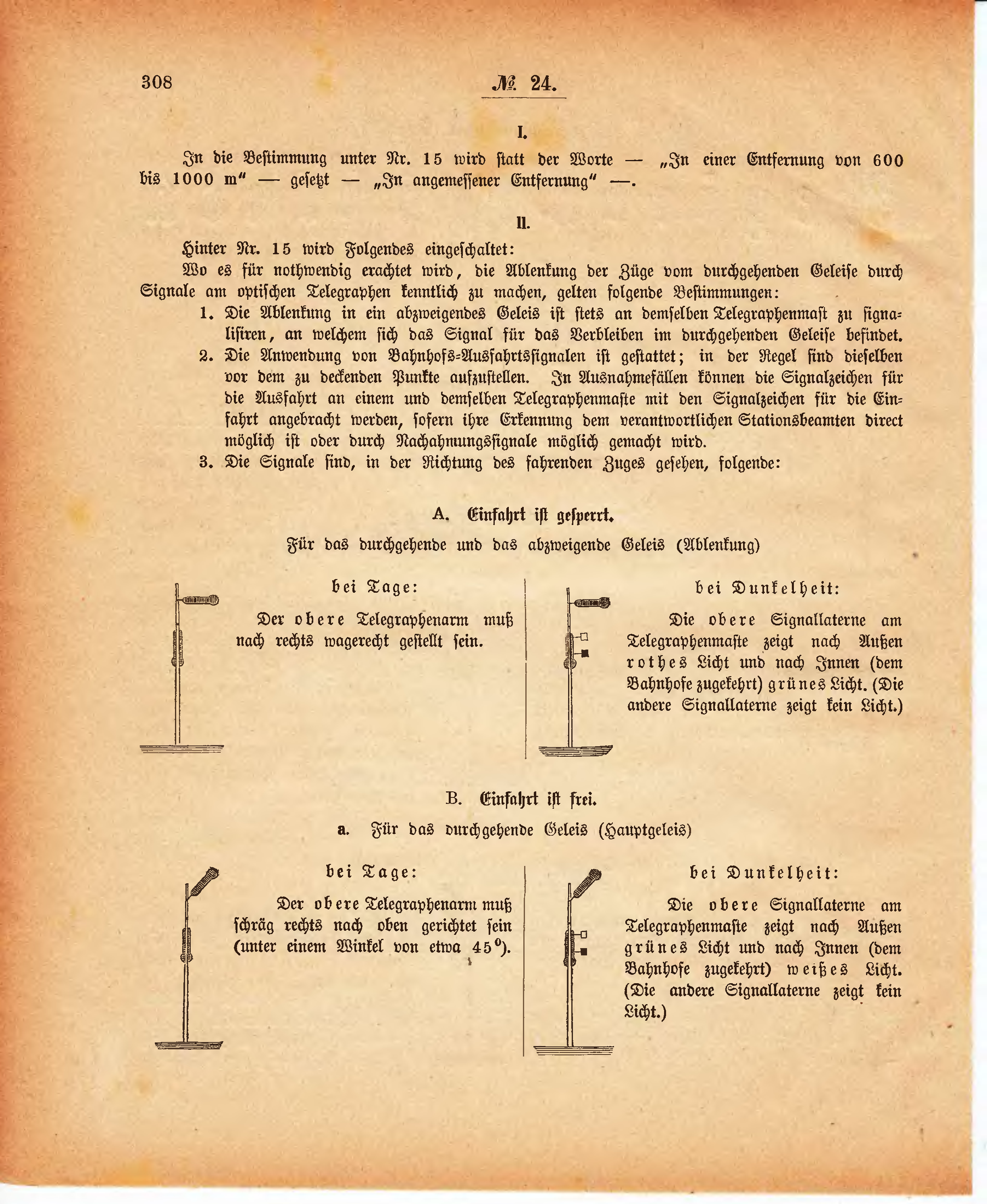 Wo es für nothwendig erachtet wird, die Ablenkung der Züge vom durchgehenden Geleise durch Signale am optischen Telegraphen kenntlich zu machen, gelten folgende Bestimmungen: