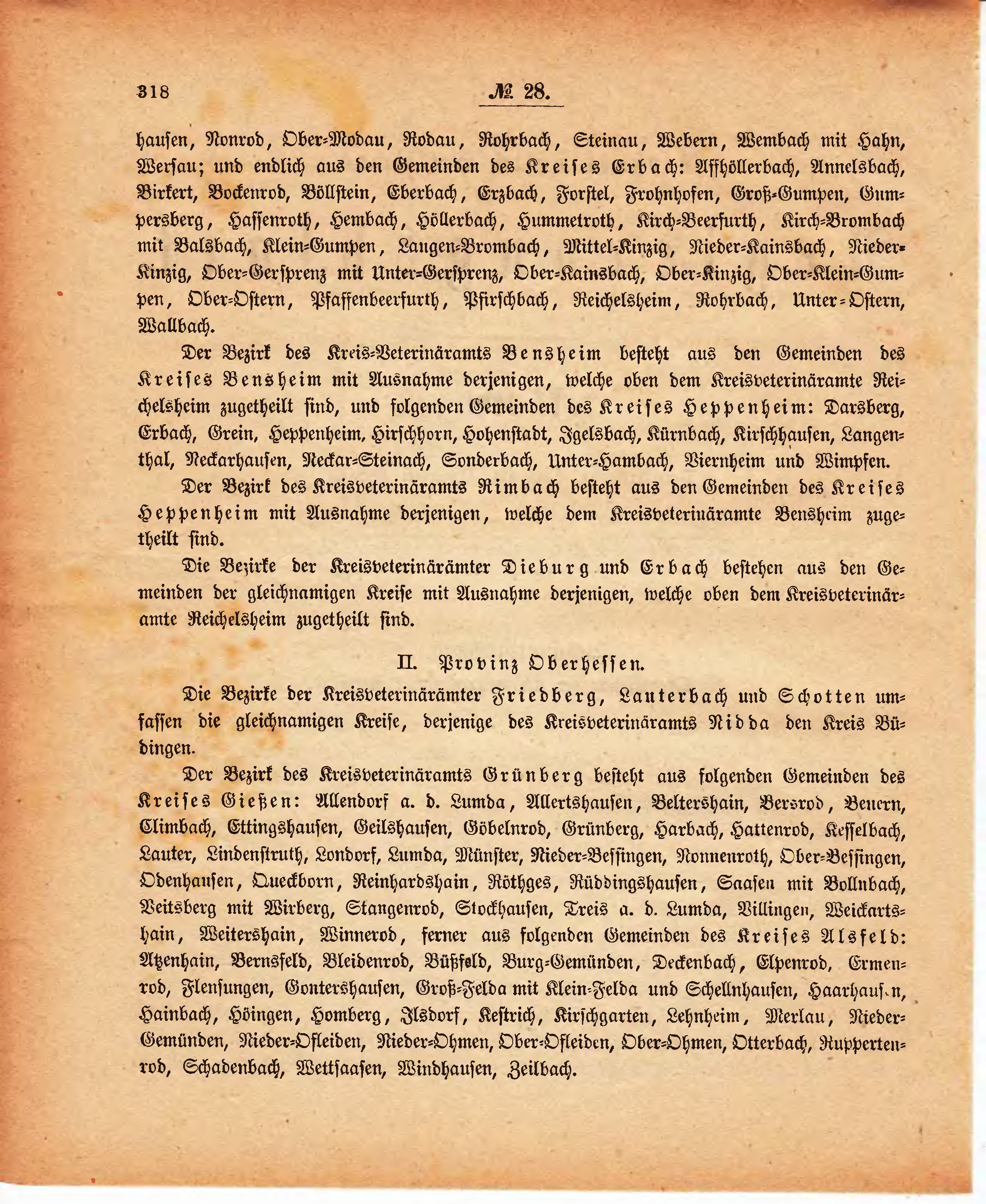 Die Bezirke der Kreisveterinärämter {{Sperrschrift |Dieburg und Erbach bestehen aus den Gemeinden der gleichnamigen Kreise mit Ausnahme derjenigen, welche oben dem Kreisveterinäramte Reichelsheim zugetheilt sind.