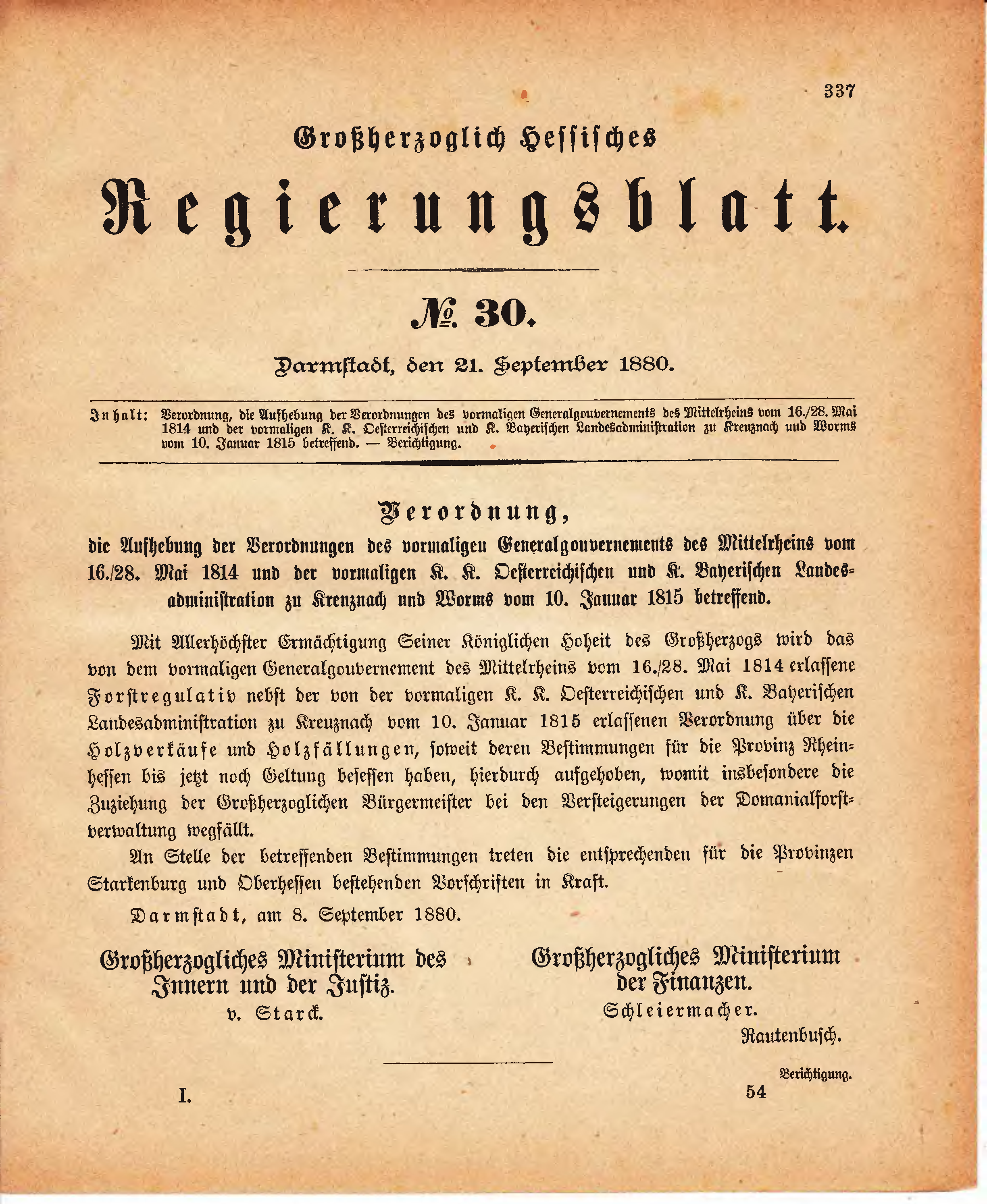 Großherzogtum Hessen/Regierungsblatt 1880/337