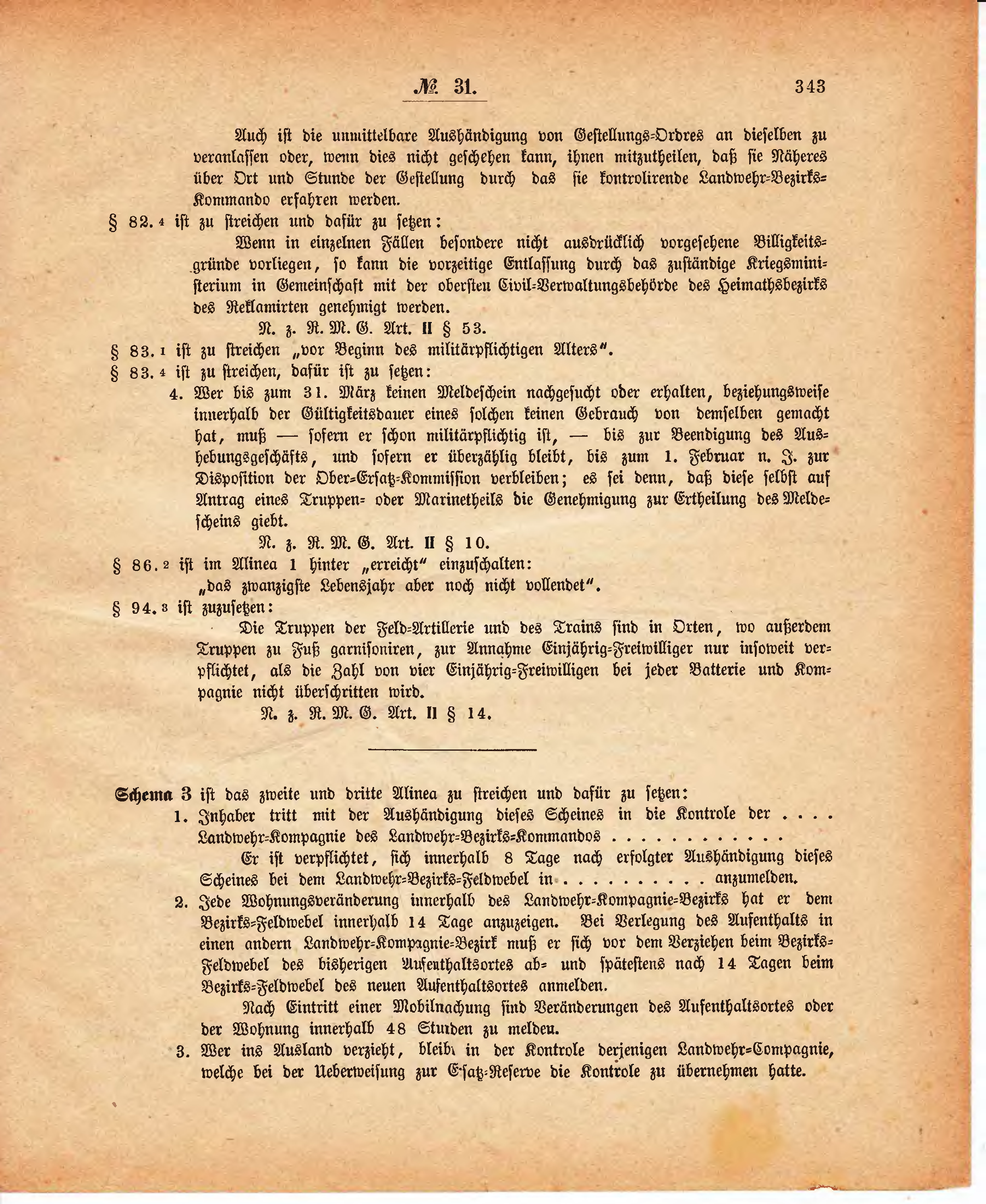 | § 83. 1 ist zu streichen vor Beginn des militärpflichtigen Alters". | ||