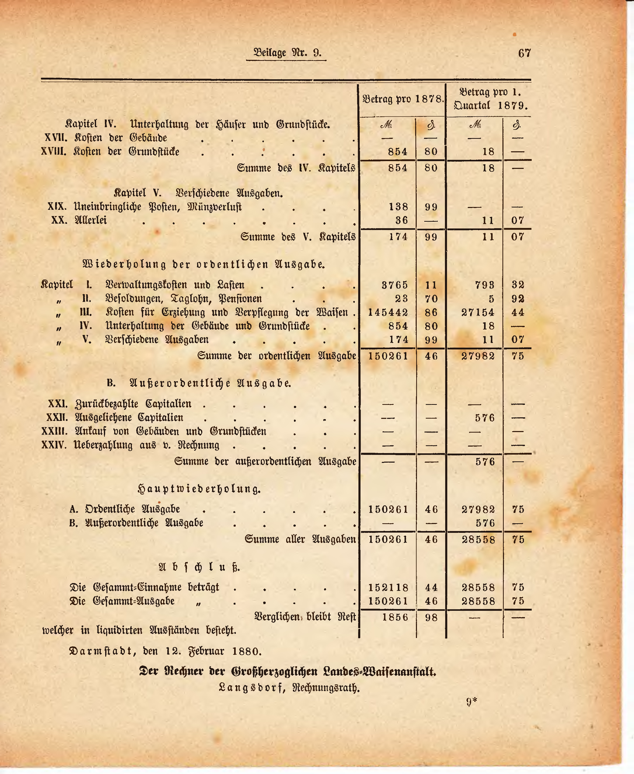 Der Rechner der Großherzoglichen Landes-Waisenanstalt.