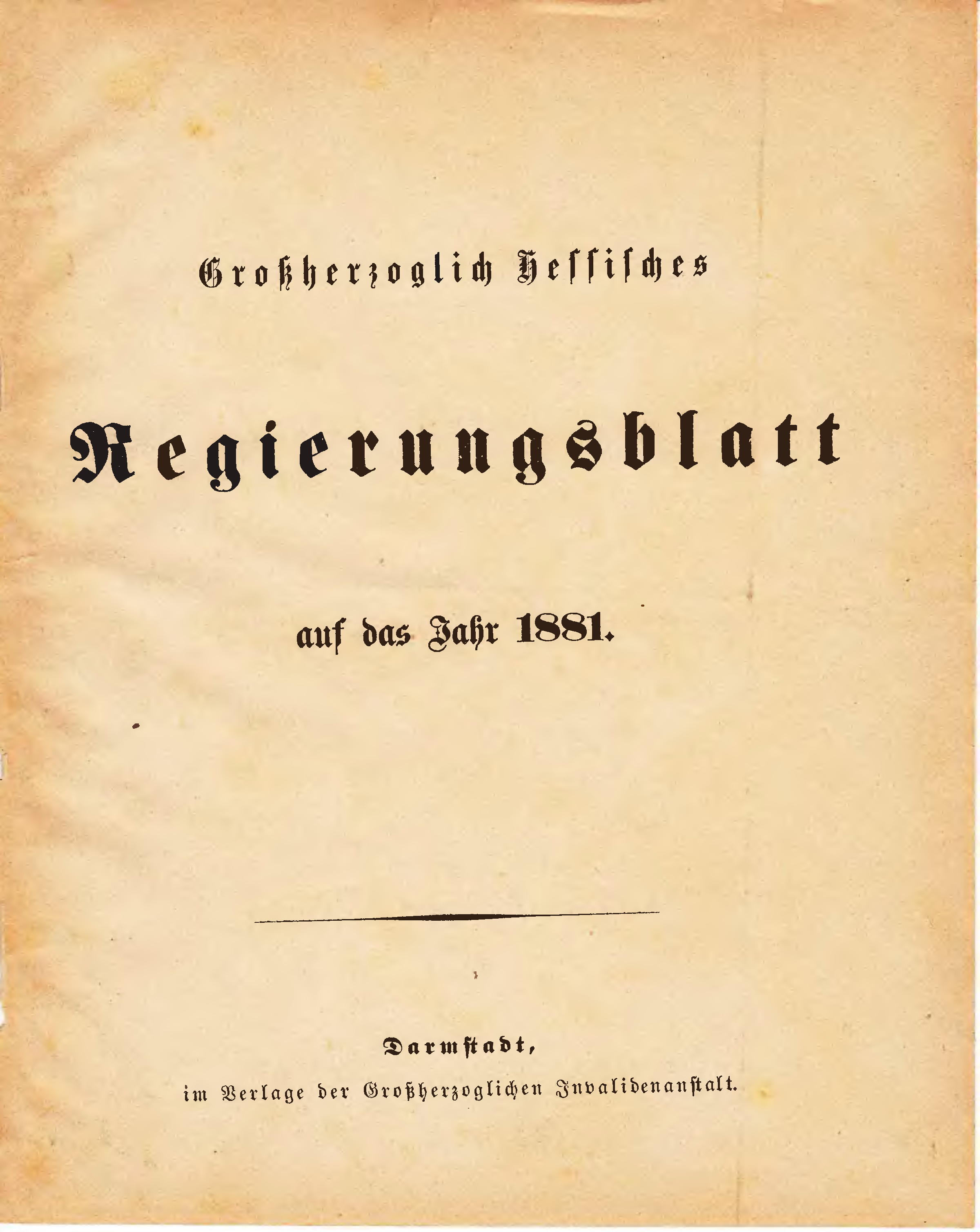 Großherzoglich Hessisches Regierungsblatt auf das Jahr 1881. Darmstadt: Verlag der Großherzoglichen Invaliden-Anstalt 1881