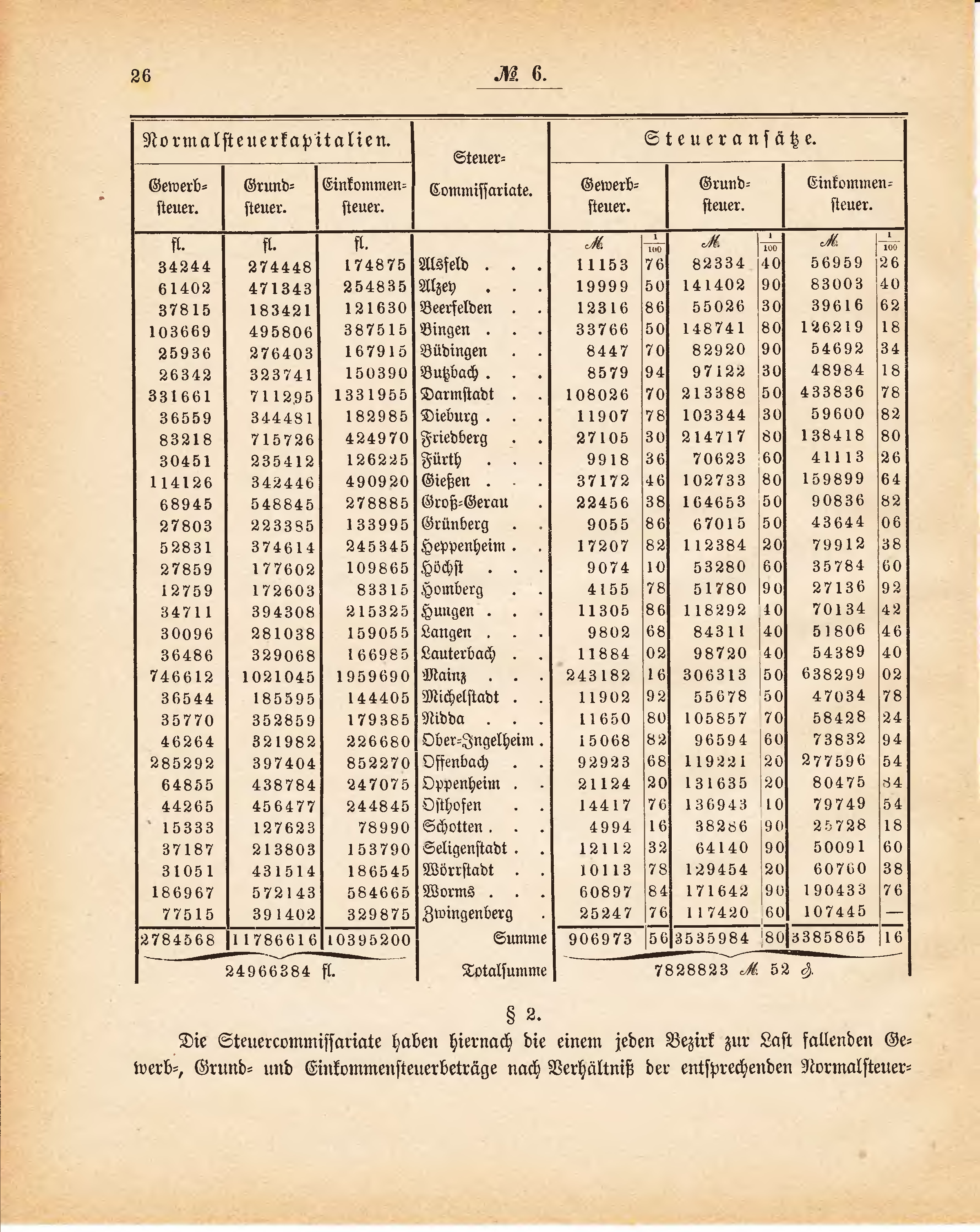 Die Steuercommissariate haben hiernach die einem jeden Bezirk zur Last fallenden Gewerb-, Grund- und Einkommensteuerbeträge nach Verhältniß der entsprechenden Normalsteuerkapitalien
