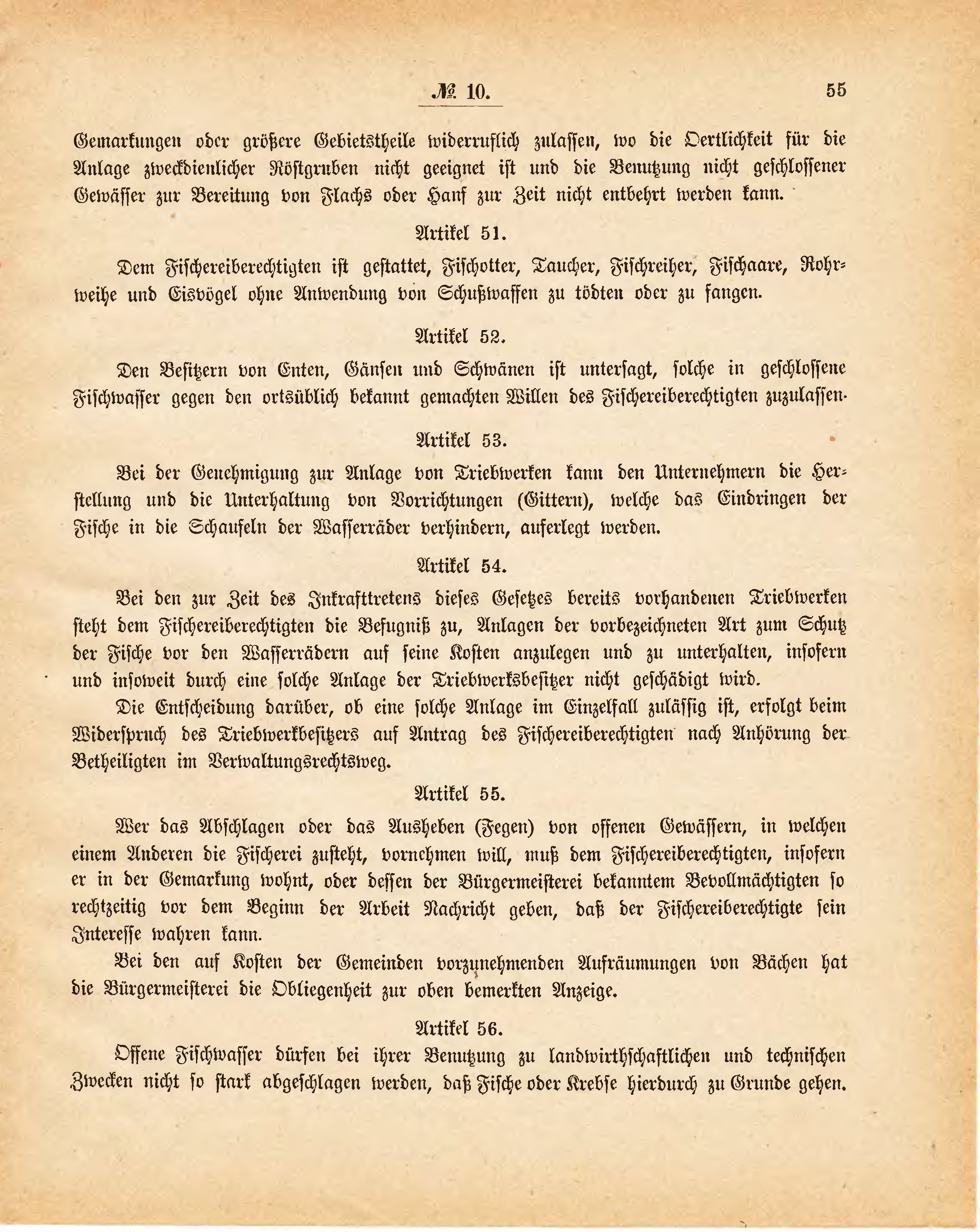 Offene Fischwasser dürfen bei ihrer Benutzung zu landwirthschaftlichen und technischen Zwecken nicht so stark abgeschlagen werden, daß Fische oder Krebse hierdurch zu Grunde gehen.