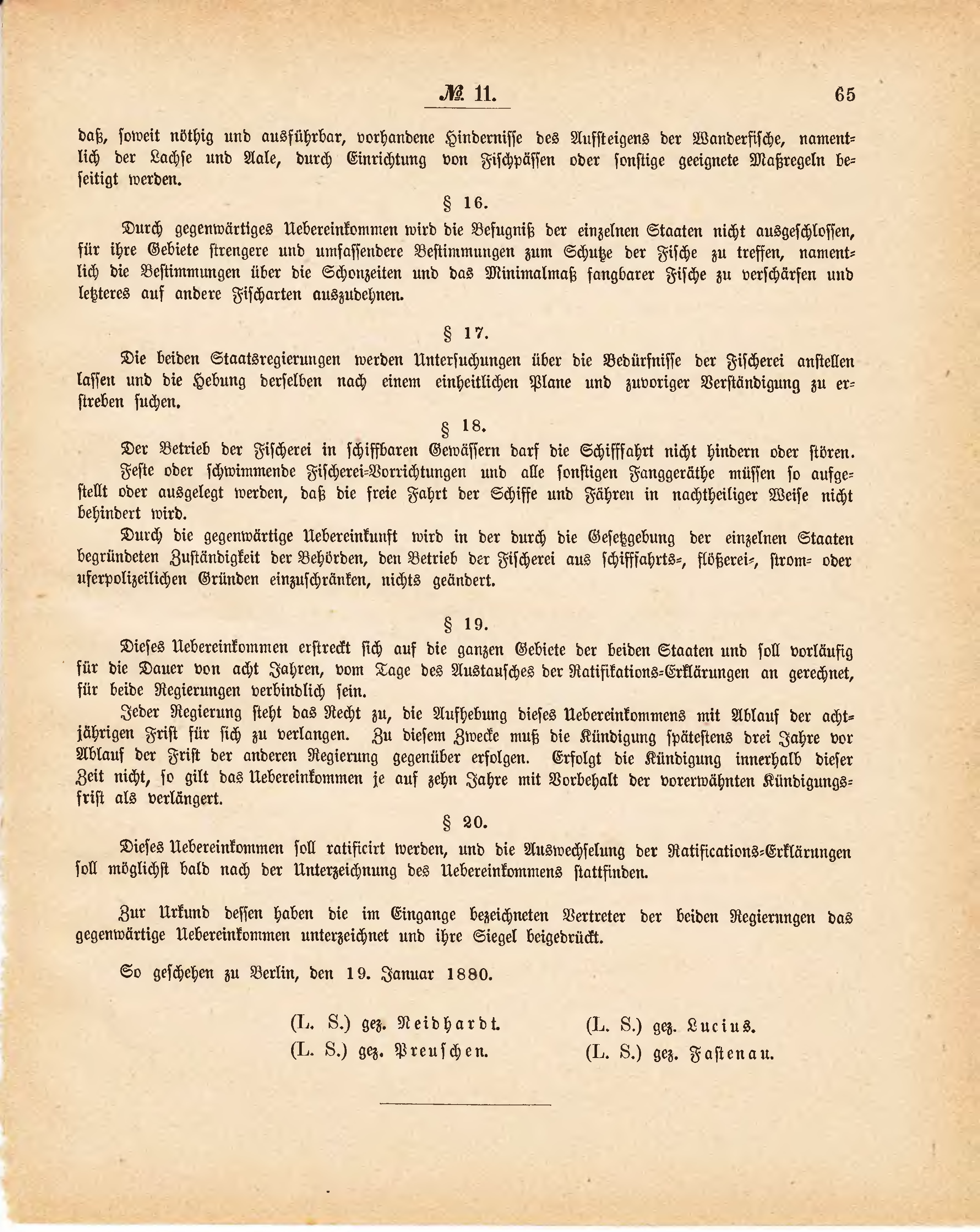 Die beiden Staatsregierungen werden Untersuchungen über die Bedürfnisse der Fischerei anstellen lassen und die Hebung derselben nach einem einheitlichen Plane und zuvoriger Verständigung zu erstreben suchen.