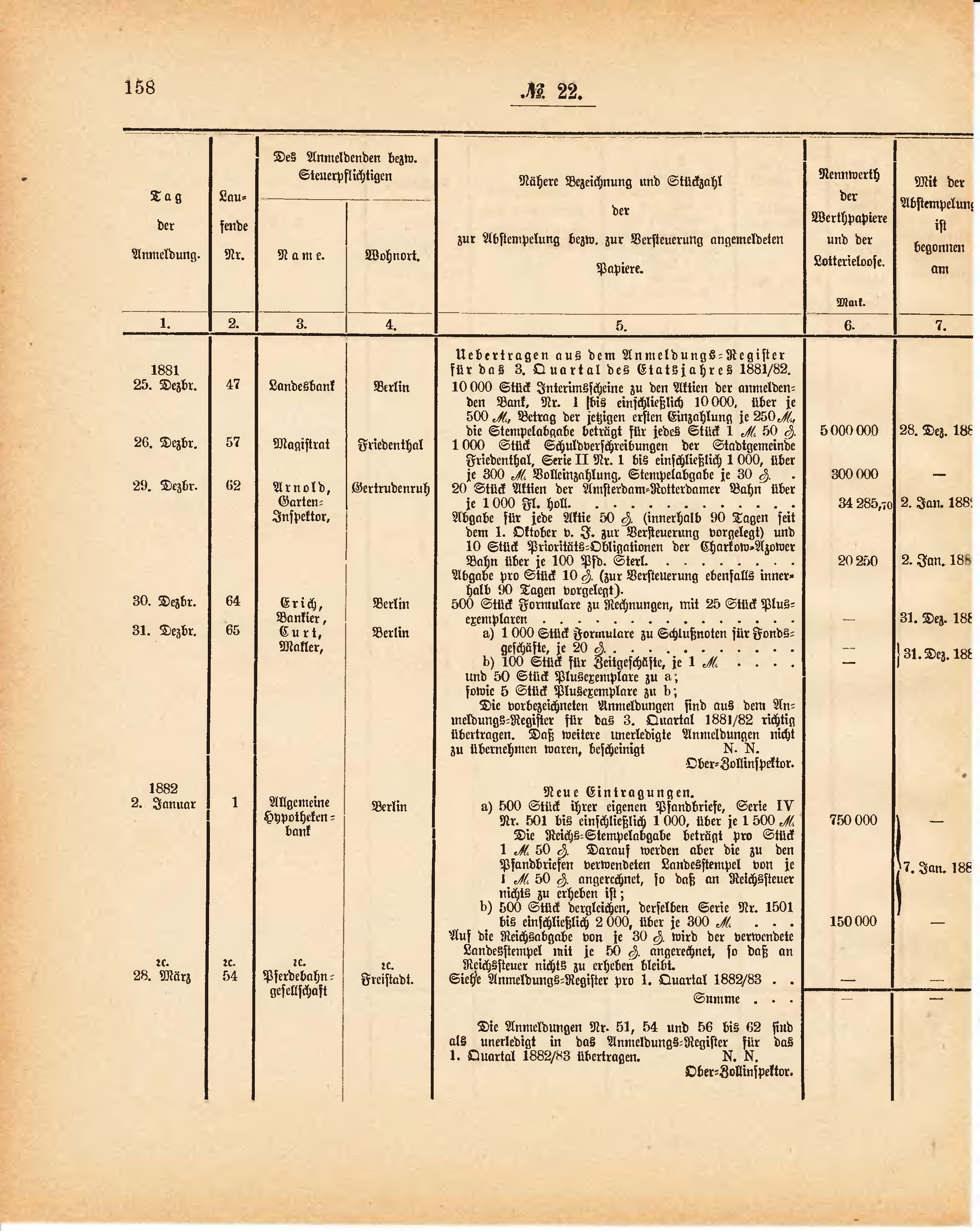 5000000 | 28.Dez. 1881 | - | 15000 | 2 | 20 | 30. Dezember 1881 | 2. Januar 1882 | 15000 | 1 | ||||