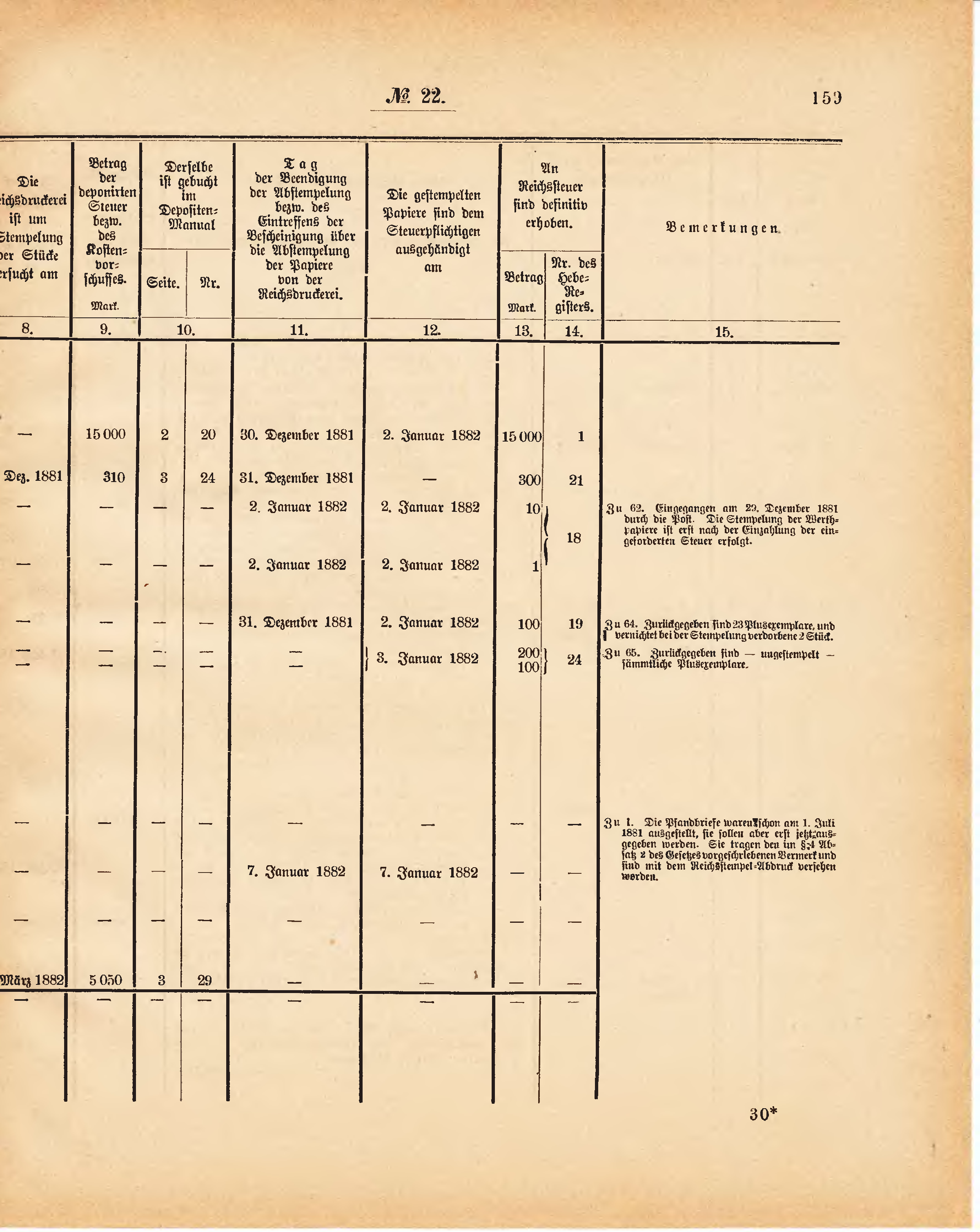 5000000 | 28.Dez. 1881 | - | 15000 | 2 | 20 | 30. Dezember 1881 | 2. Januar 1882 | 15000 | 1 | ||||