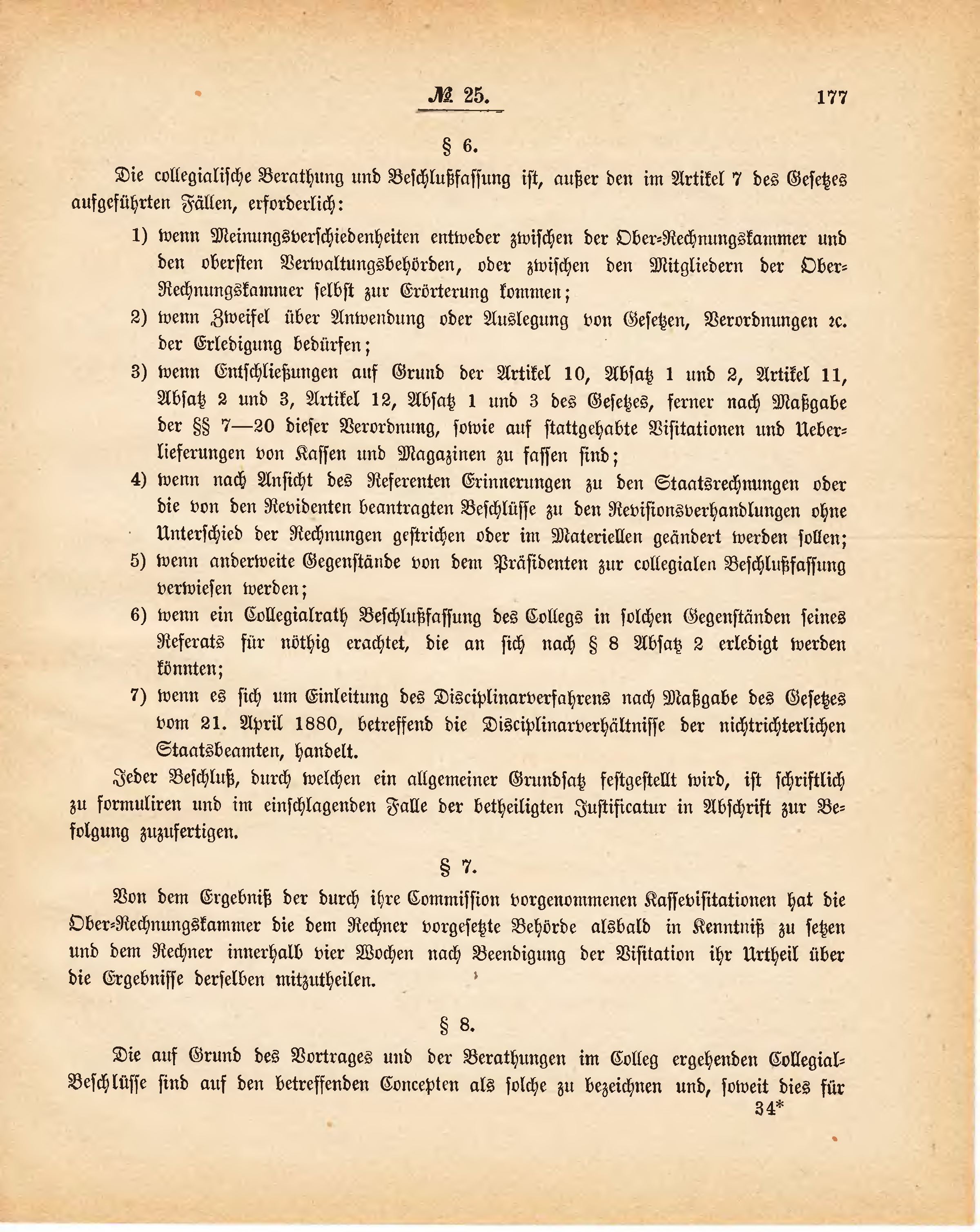 Die collegialische Berathung und Beschlußfassung ist, außer den im Artikel 7 des Gesetzes aufgeführten Fällen, erforderlich: