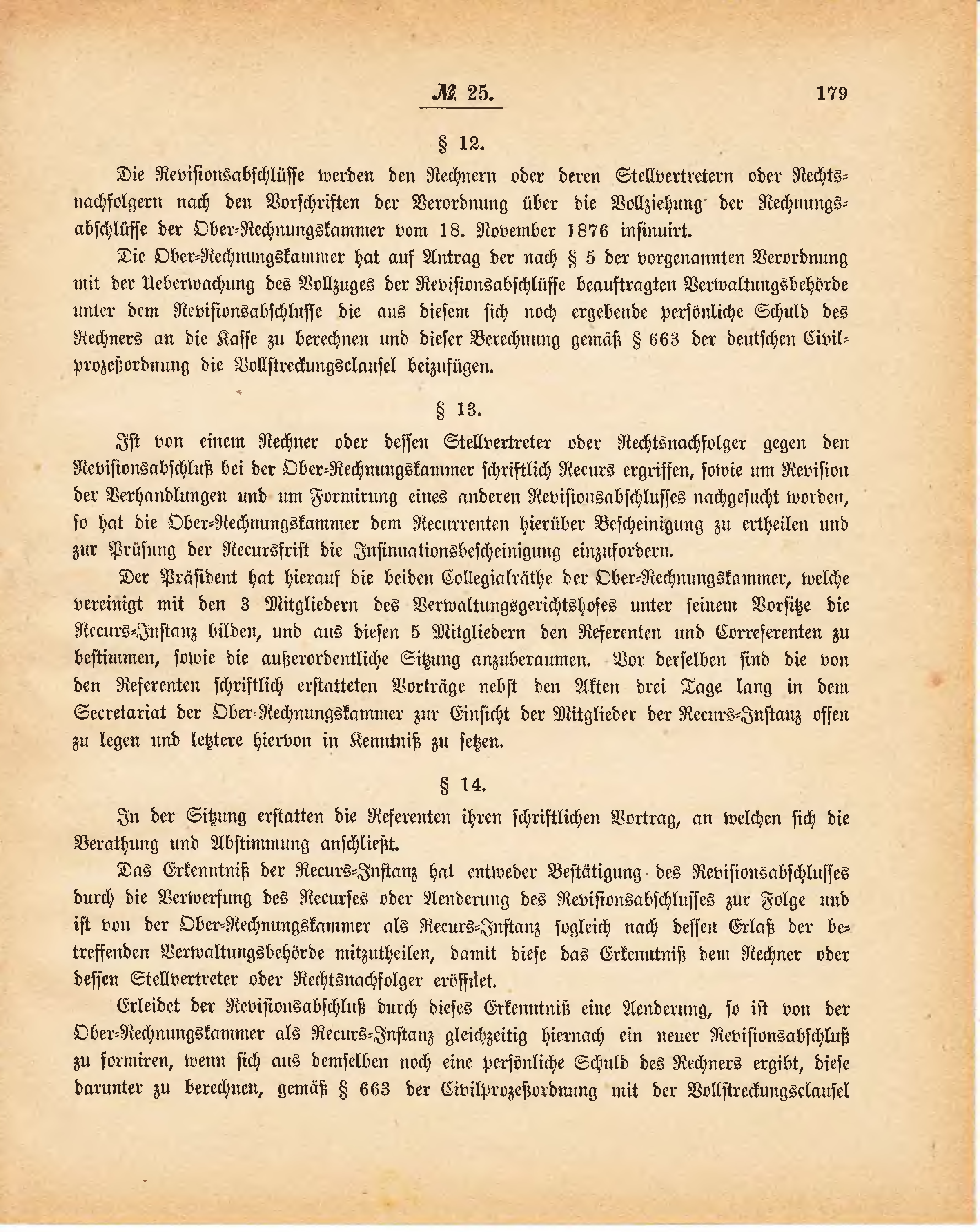 Erleidet der Revisionsabschluß durch dieses Erkenntniß eine Aenderung, so ist von der Ober-Rechnungskammer als Recurs-Instanz gleichzeitig hiernach ein neuer Revisionsabschluß zu formiren, wenn sich aus demselben noch eine persönliche Schuld des Rechners ergibt, diese darunter zu berechnen, gemäß § 663 der Civilprozeßordnung mit der Vollstreckungsclausel