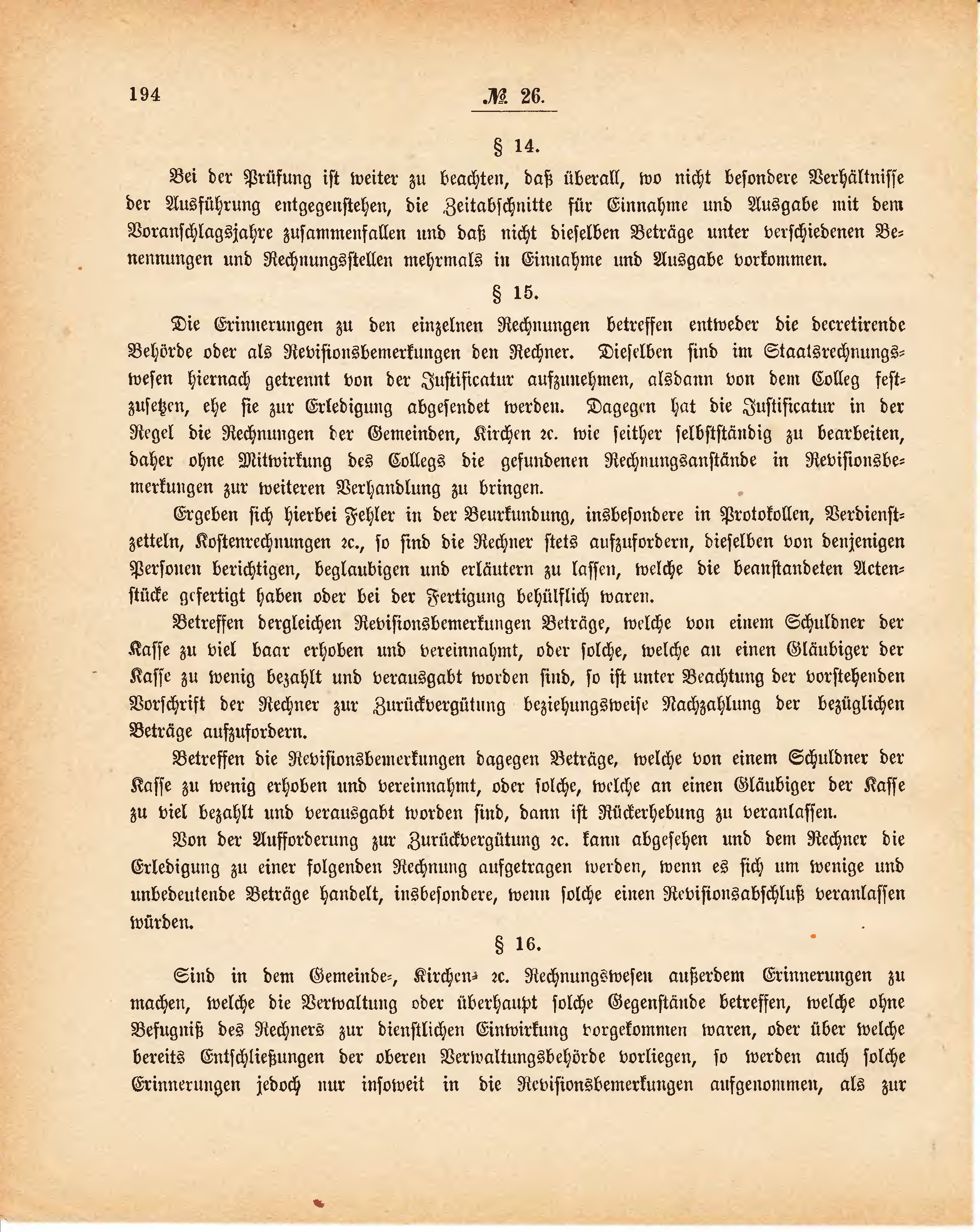 Sind in dem Gemeinde-, Kirchen- etc. Rechnungswesen außerdem Erinnerungen zu machen, welche die Verwaltung oder überhaupt solche Gegenstände betreffen, welche ohne Befugniß des Rechners zur dienstlichen Einwirkung vorgekommen waren, oder über welche bereits Entschließungen der oberen Verwaltungsbehörde vorliegen, so werden auch solche Erinnerungen jedoch nur insoweit in die Revisionsbemerkungen aufgenommen, als zur