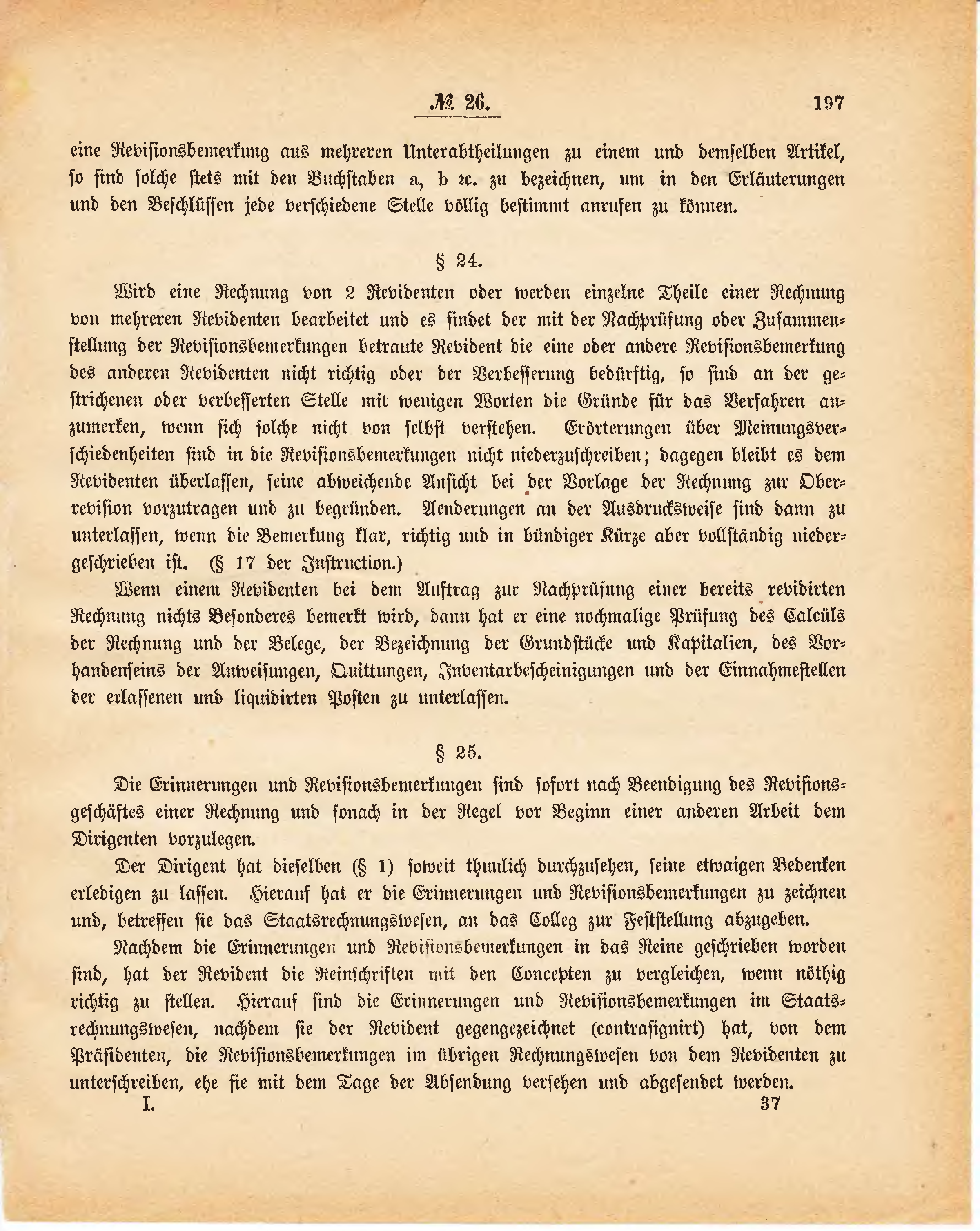 Die Erinnerungen und Revisionsbemerkungen sind sofort nach Beendigung des Revisionsgeschäftes einer Rechnung und sonach in der Regel vor Beginn einer anderen Arbeit dem Dirigenten vorzulegen.