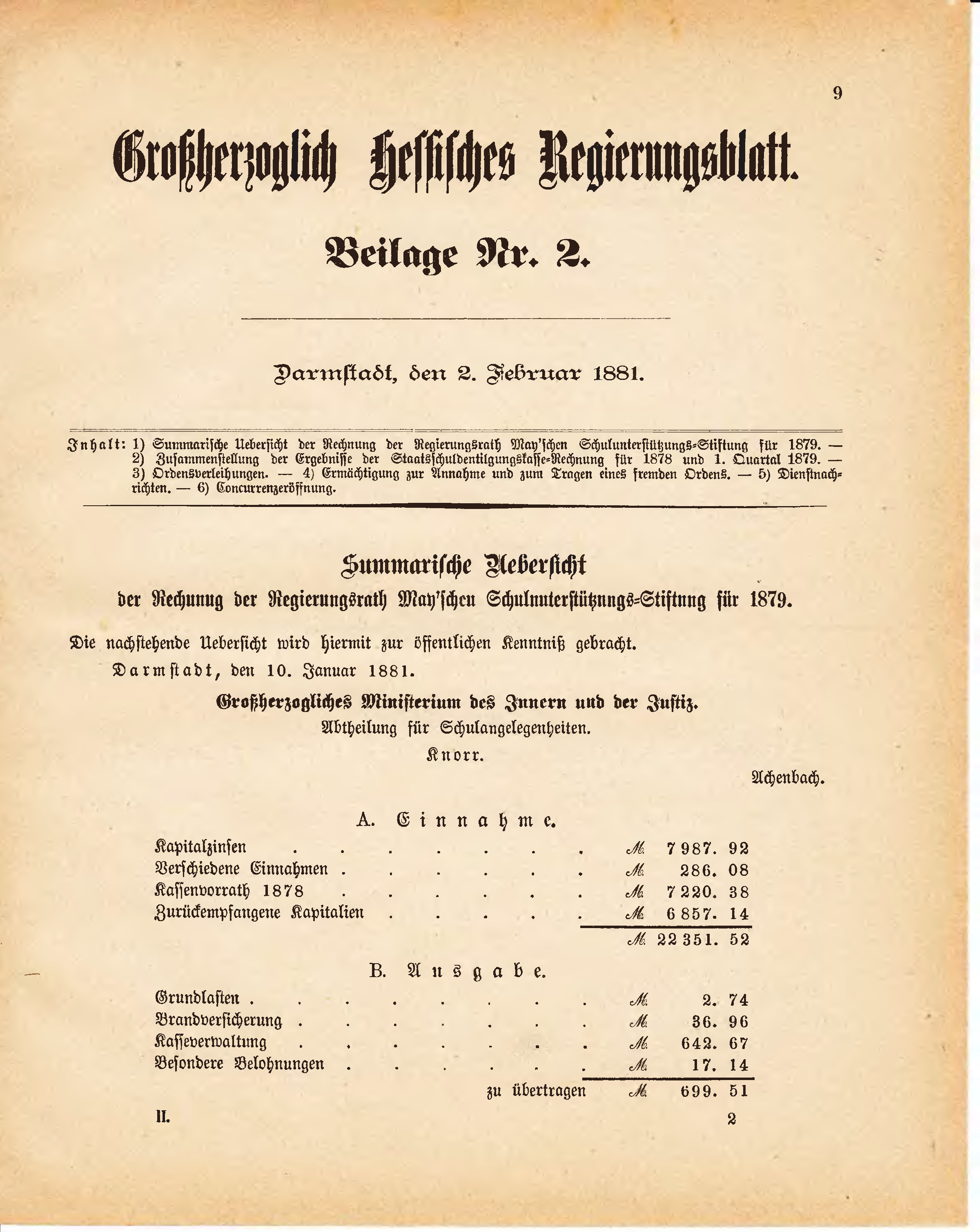 | Großherzogtum Hessen/Regierungsblatt 1881 | |