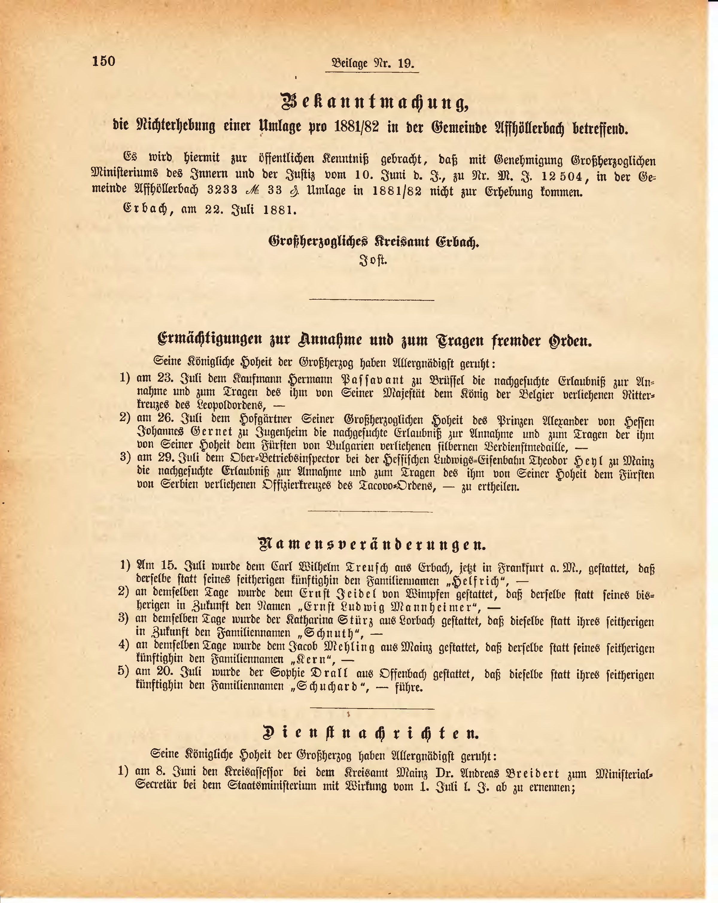Großherzogtum Hessen/Regierungsblatt 1881/B150