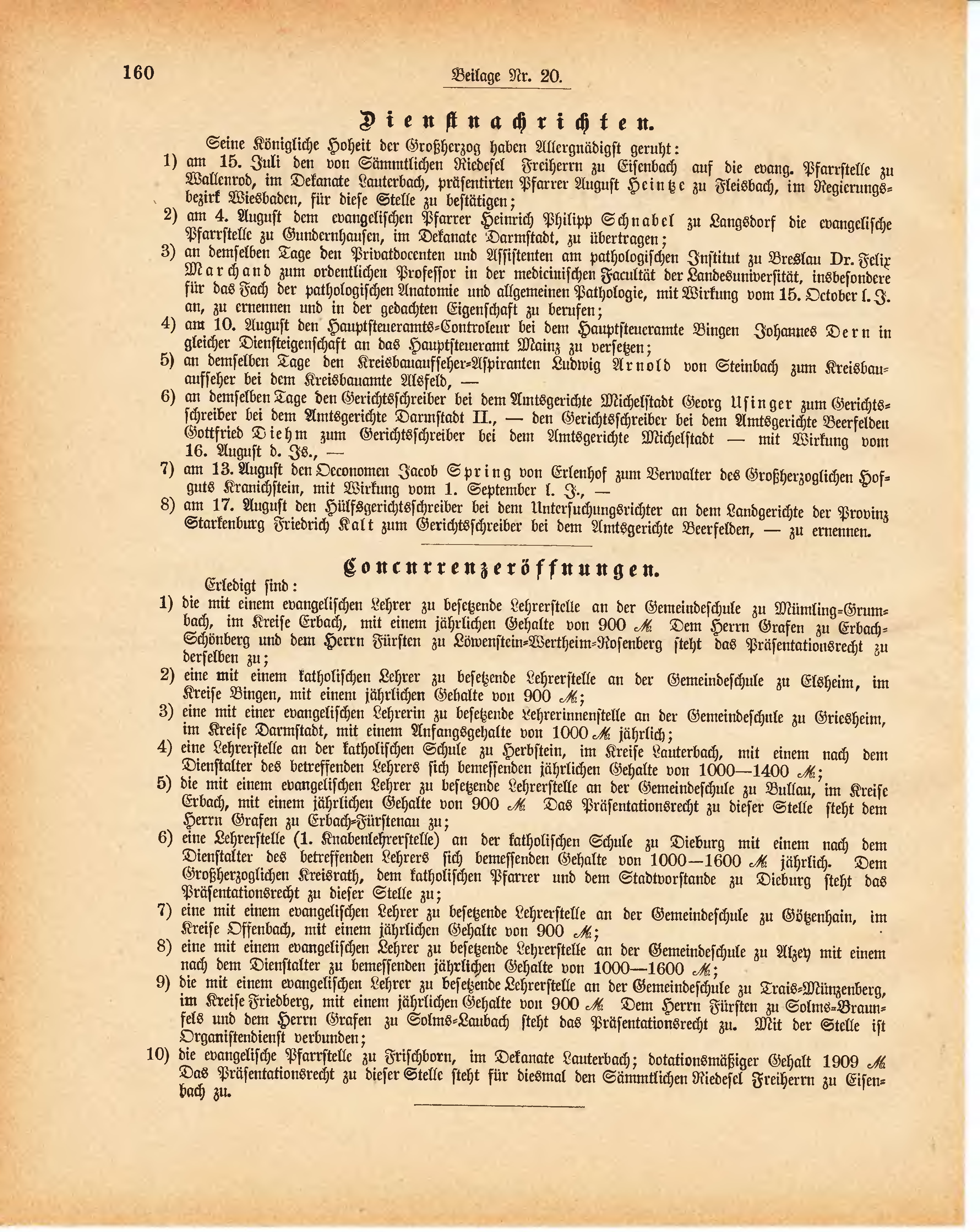 | 6) | an demselben Tage den Gerichtsschreiber bei dem Amtsgerichte Michelstadt Georg Usinger zum Gerichtsschreiber bei dem Amtsgerichte Darmstadt IIl., - den Gerichtsschreiber bei dem Amtsgerichte Beerfelden Gottfried Diehm zum Gerichtsschreiber bei dem Amtsgerichte Michelstadt - mit Wirkung vom 16. August d. Js., - |