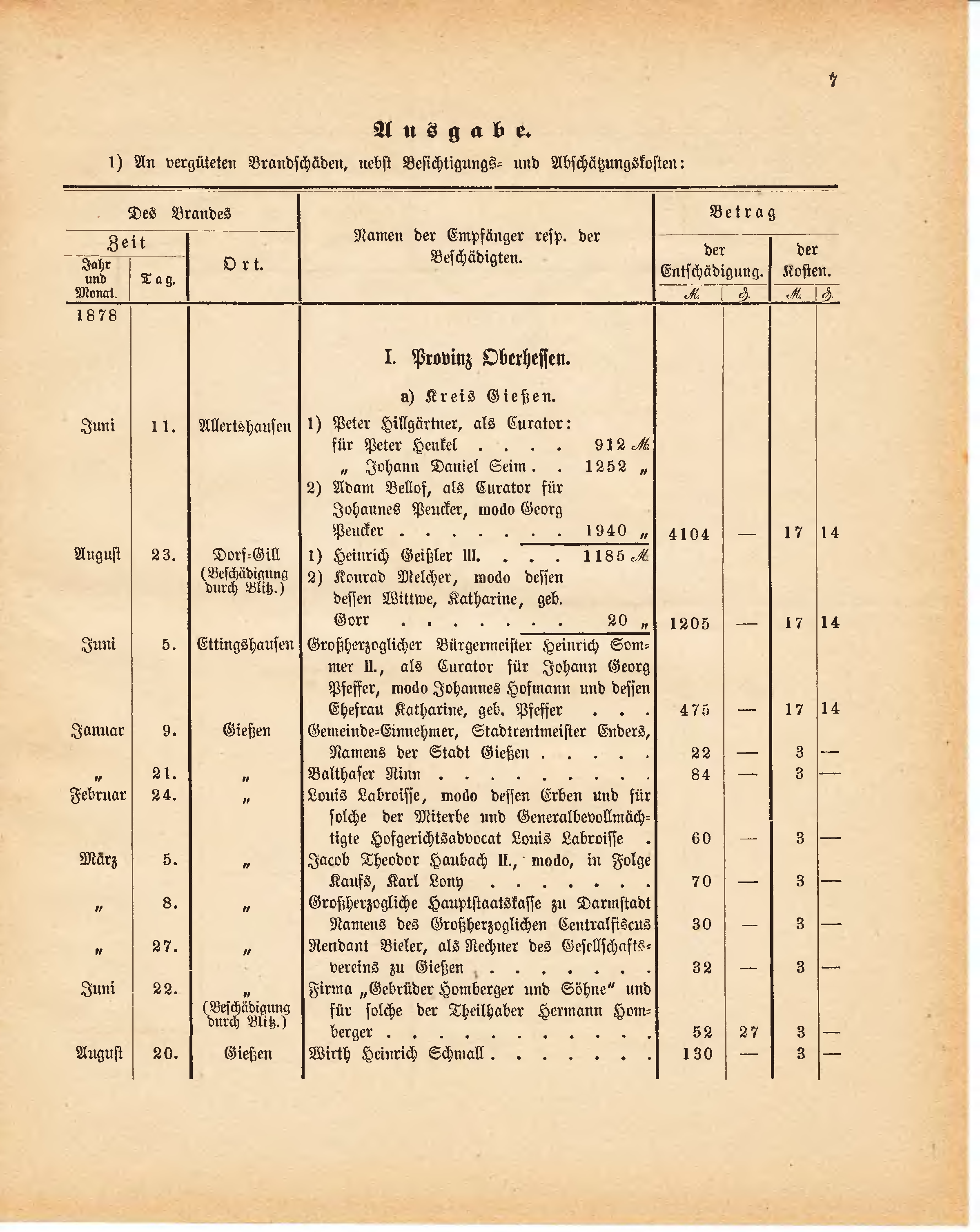 1) An vergüteten Brandschäden, nebst Besichtigungs- und Abschätzungskosten: