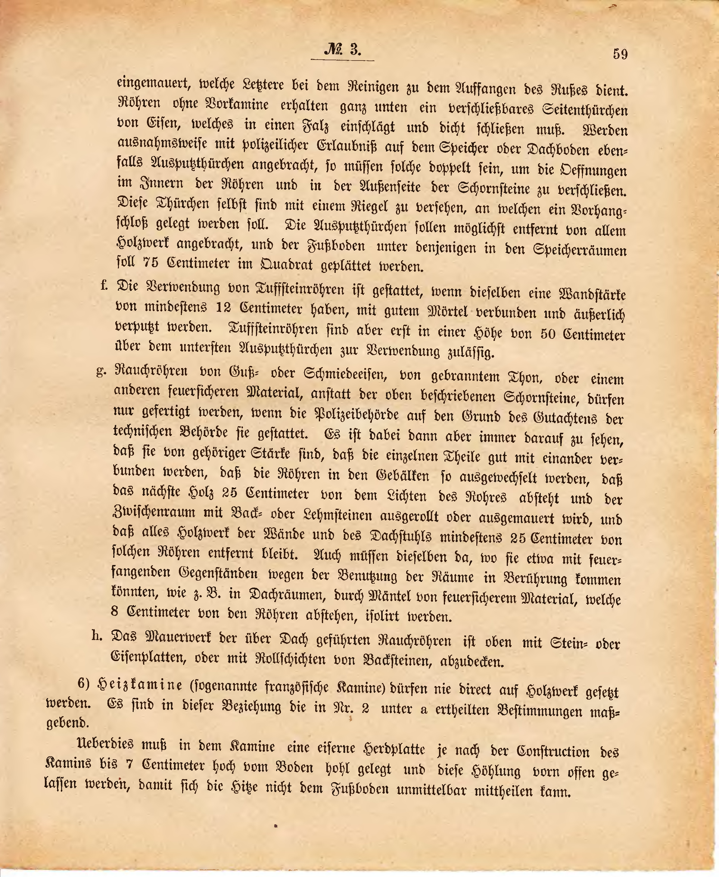 6) Heizkamine (sogenannte französische Kamine) dürfen nie direct auf Holzwerk gesetzt werden. Es sind in dieser Beziehung die in Nr. 2 unter a ertheilten Bestimmungen maßgebend.