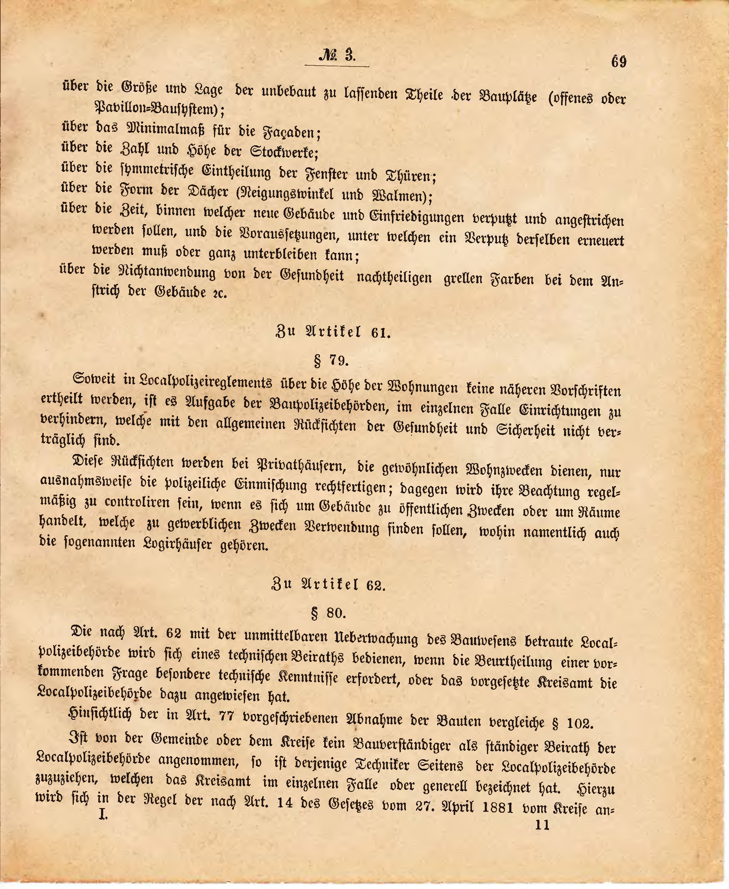 Ist von der Gemeinde oder dem Kreise kein Bauverständiger als ständiger Beirath der Localpolizeibehörde angenommen, so ist derjenige Techniker Seitens der Localpolizeibehörde zuzuziehen, welchen das Kreisamt im einzelnen Falle oder generell bezeichnet hat. Hierzu wird sich in der Regel der nach Art. 14 des Gesetzes vom 27. April 1881 vom Kreise anzustellende